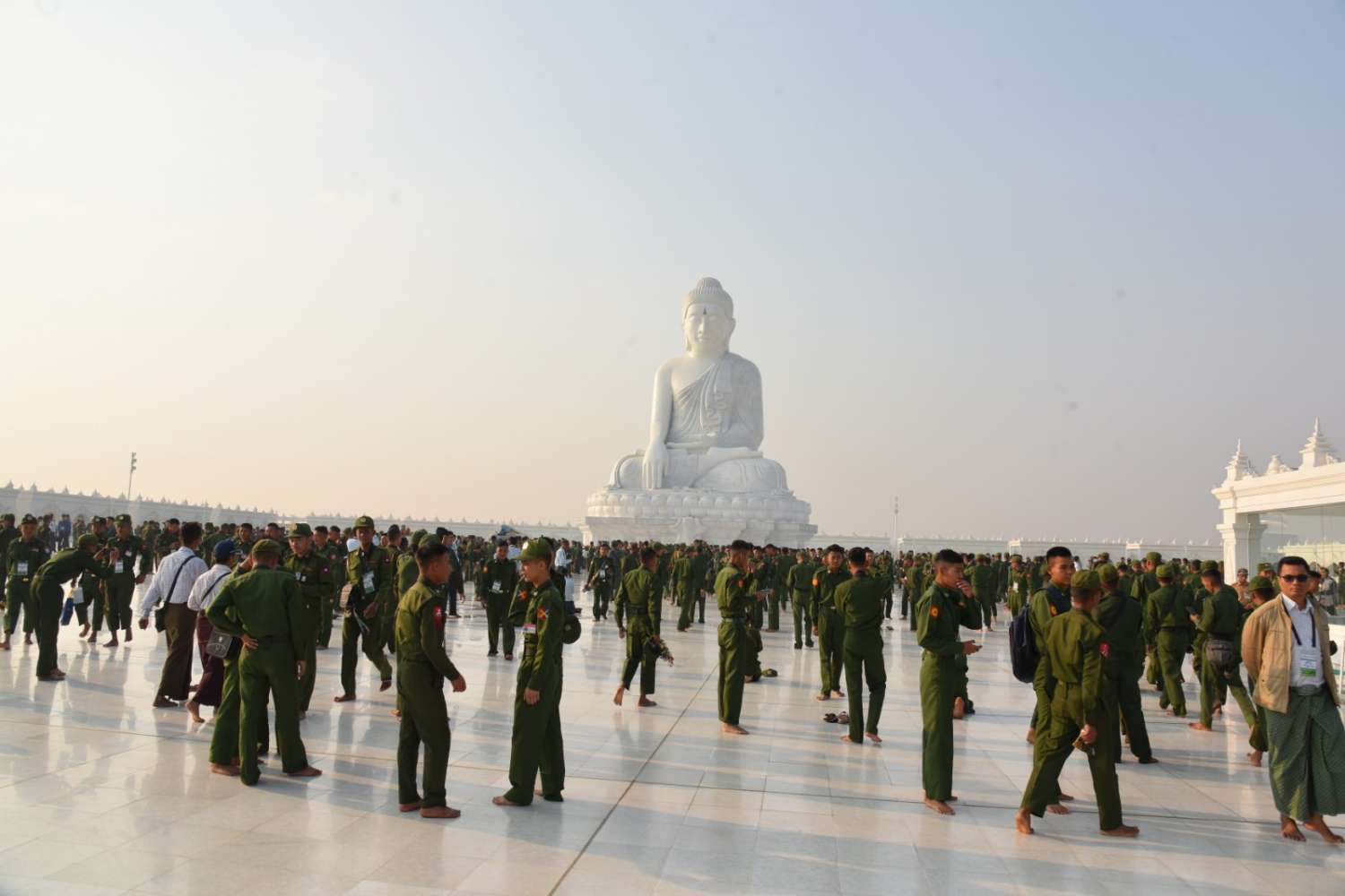 ပြည်ထောင်စုနယ်မြေ နေပြည်တော်၊ ဒက္ခိဏသီရိမြို့နယ်ရှိ ဗုဒ္ဓဥယျာဉ်ဝတ္ထုကံတော်တွင် တည်ထားပူဇော်သည့် ကမ္ဘာပေါ်ရှိ ထိုင်တော်မူကျောက်ဆစ်ဗုဒ္ဓရုပ်ပွားတော်များအနက် ဉာဏ်တော်အမြင့်ဆုံးဖြစ်သည့် မာရဝိဇယ ဗုဒ္ဓရုပ်ပွားတော်မြတ်ကြီးအား ယနေ့တွင် (၇၉) နှစ်မြောက် တပ်မတော်နေ့စစ်ရေးပြအခမ်းအနားတွင်ပါဝင်သည့် စစ်ရေးပြစစ်ကြောင်းများမှ တပ်မတော်(ကြည်း၊ ရေ၊ လေ)အရာရှိ၊ စစ်သည်များ၊ တပ်မတော်(ကြည်း)အမျိုးသမီး စစ်ရေးပြတပ်ခွဲ၊ မြန်မာနိုင်ငံရဲတပ်ဖွဲ့ဝင်များနှင့် မြန်မာနိုင်ငံရဲတပ်ဖွဲ့ အမျိုးသမီးစစ်ရေးပြ တပ်ခွဲတို့က ၂ သုတ်ခွဲ၍ လာရောက်ဖူးမြော် ကြည်ညိုကြသည်။