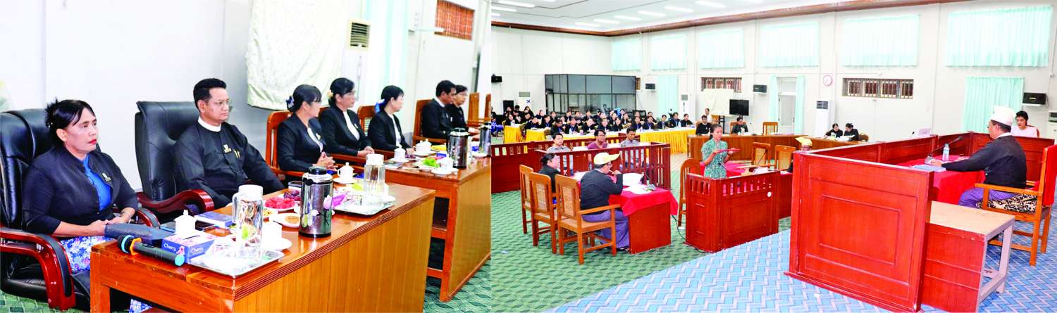 ဥပဒေအရာရှိအဆင့်-၄ (အစမ်းခန့်)များ လုပ်ငန်းခွင်ဝင်သင်တန်းအမှတ်စဉ် (၁/၂၀၂၄) မှ သင်တန်းသား ၆၀ ကို တရားစွဲနှင့်အမှုလိုက်ဦးစီးဌာနနှင့် ဥပဒေအသိပညာပြန့်ပွားရေးဦးစီးဌာနတို့ပူးပေါင်းပြီး တရားခွင် လက်တွေ့သရုပ်ပြသခြင်း(MOCK TRIAL)ကို ယနေ့နံနက် ၉ နာရီခွဲတွင် ဥပဒေရေးရာဝန်ကြီးဌာန မြေညီထပ်အစည်းအဝေးခန်းမ၌ ကျင်းပသည်။