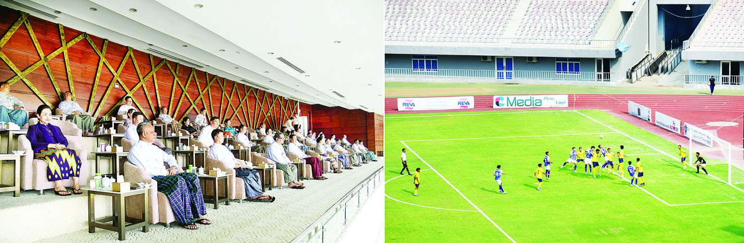 ၂၀၂၃-၂၀၂၄ခုနှစ် ပြည်နယ်နှင့် တိုင်းဒေသကြီး အသက်(၂၅)နှစ်အောက် အမျိုးသားဘောလုံးပြိုင်ပွဲဖွင့်ပွဲ အခမ်းအနားကို ယနေ့မွန်းလွဲပိုင်းတွင် နေပြည်တော်ရှိ ဝဏ္ဏသိဒ္ဓိဘောလုံးကွင်း၌ကျင်းပရာ နိုင်ငံတော်စီမံအုပ်ချုပ်ရေးကောင်စီအဖွဲ့ဝင်များ တက်ရောက်ကြည့်ရှု အားပေးကြသည်။