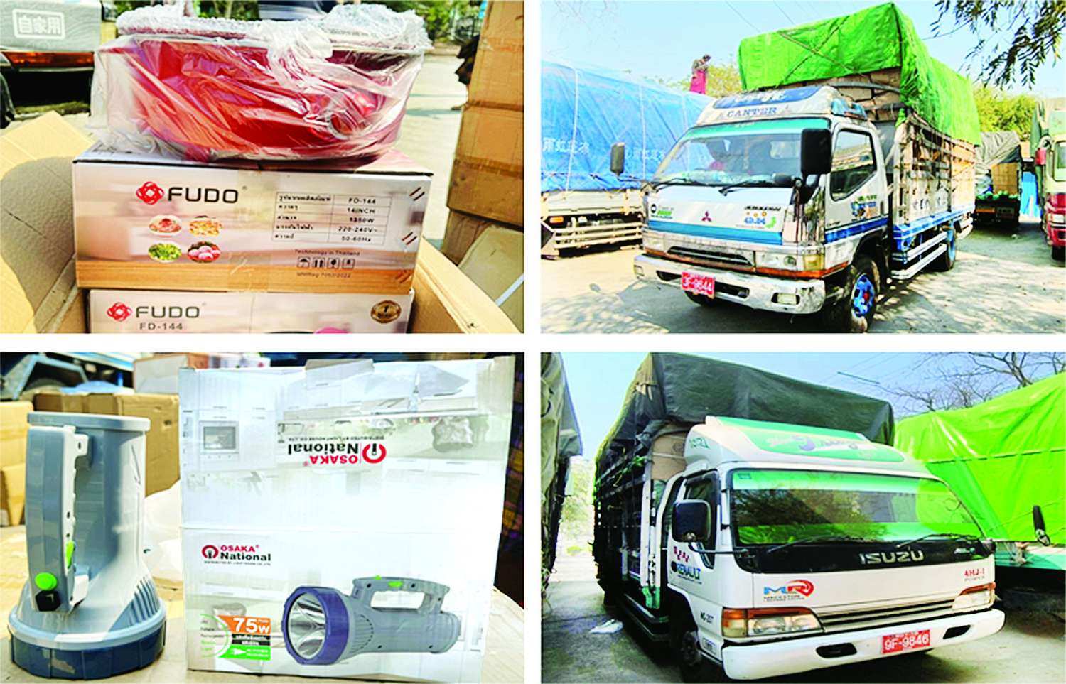တရားမဝင်ကုန်သွယ်မှုတိုက်ဖျက်ရေး ဦးဆောင်ကော်မတီ၏ ကြီးကြပ်ကွပ်ကဲမှုဖြင့် တရားမဝင် ကုန်သွယ်မှုများကို ဥပဒေနှင့်အညီ ထိရောက်စွာ တားဆီးအရေးယူနိုင်ရေး ဆောင်ရွက်လျက်ရှိရာ မန္တလေးတိုင်းဒေသကြီး တရားမဝင်ကုန်သွယ်မှု တိုက်ဖျက်ရေးအထူးအဖွဲ့၏ စီမံခန့်ခွဲမှုဖြင့် တာဝန်ကျပူးပေါင်းအဖွဲ့က စစ်ဆေးမှုများဆောင်ရွက်ခဲ့ရာ မတ် ၁၄ ရက်တွင် မြစ်ငယ် - ထုံးဘိုတိုးဂိတ်အနီး၌ မော်တော်ယာဉ်တစ်စီးပေါ်မှ တရားဝင်စာရွက် စာတမ်းအထောက်အထား တင်ပြနိုင်ခြင်းမရှိသည့် FUDO လျှပ်စစ်ဒယ်နီအိုး ၁၁၂၆ လုံး (ခန့်မှန်းတန်ဖိုး ငွေကျပ် ၁၂၈၁၂၀၀၀ နှင့် အဆိုပါပစ္စည်းများ တင်ဆောင်လာသည့် Mitsubishi Cantrer Truck တစ်စီး ခန့်မှန်းတန်ဖိုးငွေကျပ် ၁၆၀၀၀၀၀၀ ကို လည်းကောင်း၊ မတ် ၁၅ ရက်တွင် မြစ်ငယ် - ထုံးဘို တိုးဂိတ်အနီး၌ မော်တော်ယာဉ်တစ်စီးပေါ်မှ တရားဝင်စာရွက်စာတမ်းအထောက်အထား တင်ပြနိုင်ခြင်း မရှိသည့် OSAKA လက်ကိုင်မီးအိမ် အလုံး ၄၅၀ အပါအဝင် ကုန်ပစ္စည်းသုံးမျိုး ခန့်မှန်တန်ဖိုးငွေကျပ် ၉၁၆၀၀၀၀ နှင့် အဆိုပါပစ္စည်းများ တင်ဆောင်လာသည့် Isuzu Light Truck တစ်စီး ခန့်မှန်းတန်ဖိုး ငွေကျပ် ၂၅၀၀၀၀၀၀)ကိုလည်းကောင်း စုစုပေါင်း ခန့်မှန်းတန်ဖိုးငွေကျပ် ၆၂၉၇၂၀၀၀ ကို ဖမ်းဆီးရမိခဲ့ပြီး အကောက်ခွန်လုပ်ထုံးလုပ်နည်းများနှင့်အညီ အရေးယူဆောင်ရွက်လျက်ရှိသည်။