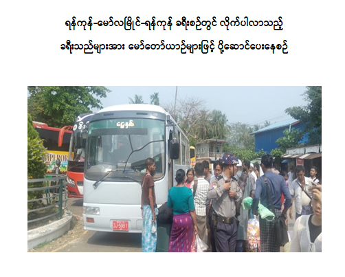 အဆိုပါမိုင်းခွဲဖျက်ဆီးမှုကြောင့် ယနေ့နံနက်ပိုင်းတွင် ရန်ကုန်မှ ပုံမှန်ထွက်ခွာလာသော အမှတ် (၈၁) အဆန်လူစီးရထားသည် ယနေ့နံနက် ၉ နာရီ ၁၀ မိနစ်အချိန်တွင် ပဲခူးဘူတာသို့ အချိန်မှန်ရောက်ရှိ/ ထွက်ခွာ၍ ကျိုက်ထိုဘူတာသို့ နေ့လည် ၁၂ နာရီ ၆ မိနစ်တွင် ရောက်ရှိရပ်နားကာ ရထားတွင် လိုက်ပါစီးနင်းသည့် ခရီးသည် ၄၄၉ ဦးအား မော်တော်ယာဉ် ၇ စီးဖြင့် သထုံဘူတာသို့ နေ့လည် ၁ နာရီတွင် ပို့ဆောင်ပေးခဲ့ပြီး ယနေ့နံနက် ၉ နာရီ ၁၀ မိနစ်တွင် မော်လမြိုင်မှ စတင်ထွက်ခွာလာသည့် အမှတ် (၈၂) အစုန်ရထားသည် သထုံဘူတာသို့ နေ့လည် ၁၁ နာရီ ၃၈ မိနစ်တွင် ရောက်ရှိရပ်တန့်၍ မော်တော်ယာဉ်များဖြင့် လိုက်ပါလာသည့် အမှတ် (၈၁) အဆန်ရထားမှ ခရီးသည်များအား မော်လမြိုင်ဘက်သို့ ဆက်လက်ပို့ဆောင်ပေးခဲ့ပါသည်။ သထုံဘူတာတွင် ရောက်ရှိနေသည့် အမှတ် (၈၂) အစုန် ရထားစီးခရီးသည် ၄၄၁ ဦးအား အဆိုပါမော်တော်ယာဉ်များဖြင့် ကျိုက်ထိုဘူတာသို့ မွန်းလွဲ ၂ နာရီခွဲတွင် ပို့ဆောင်ပေးခဲ့ပြီး အမှတ် (၈၁) အဆန်ရထားဖြင့် ရန်ကုန်သို့ ဆက်လက်ပို့ဆောင်ပေးခဲ့ပါသည်။ ခရီးသည်များအား မော်တော်ယာဉ်များဖြင့် ရထားပေါ်သို့ ကူးပြောင်းပို့ဆောင်ရာတွင် ဘေးအန္တရာယ်ကင်းရှင်းရေးအတွက် မြန်မာ့မီးရထားဝန်ထမ်းများက ကူညီဆောင်ရွက်ပေးခဲ့ကြသည်။