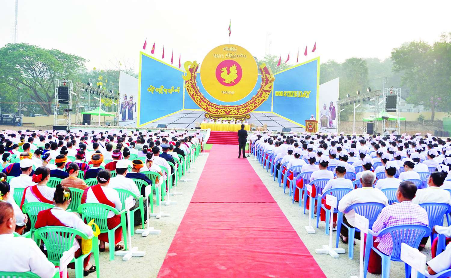ဆက်လက်၍ နိုင်ငံတော်စီမံအုပ်ချုပ်ရေးကောင်စီအတွင်းရေးမှူးသည် နိုင်ငံတော်စီမံအုပ်ချုပ်ရေးကောင်စီအဖွဲ့ဝင်များ၊ ပြည်ထောင်စုဝန်ကြီးများ၊ ပြည်နယ်ဝန်ကြီးချုပ်၊ ဒုတိယဝန်ကြီးများနှင့်အတူ မော်လမြိုင်မြို့ပြည်နယ်ခန်းမ၌ ကျင်းပသည့် နှစ်(၅၀)ပြည့် ရွှေရတုမွန်ပြည်နယ်နေ့အထိမ်းအမှတ် ပြည်နယ်ဂုဏ်ထူးဆောင်ဆုများ ချီးမြှင့်ခြင်းအခမ်းအနားသို့ တက်ရောက်ကြသည်။