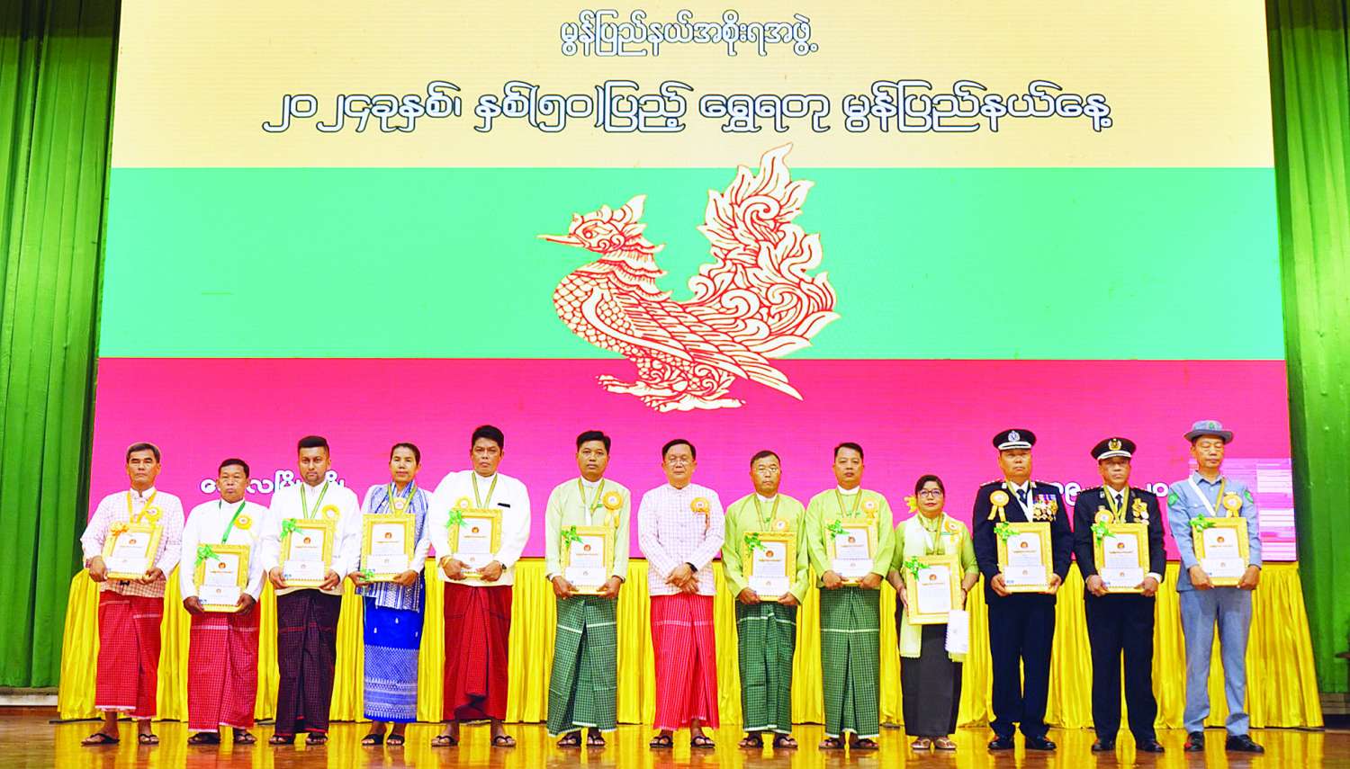 ထို့နောက် နိုင်ငံတော်စီမံအုပ်ချုပ်ရေးကောင်စီအဖွဲ့ဝင်များ၊ ပြည်နယ်ဝန်ကြီးချုပ်နှင့် တာဝန်ရှိသူများက မွန်တိုင်းရင်းသားရိုးရာယဉ်ကျေးမှု အဆို၊ အက၊ အတီးပြိုင်ပွဲတွင် ဘာသာရပ်အလိုက် ပထမ၊ ဒုတိယ၊ တတိယနှင့် အထူးဆုရရှိကြသူများကို ဆုများ ပေးအပ်ချီးမြှင့်ကြသည်။