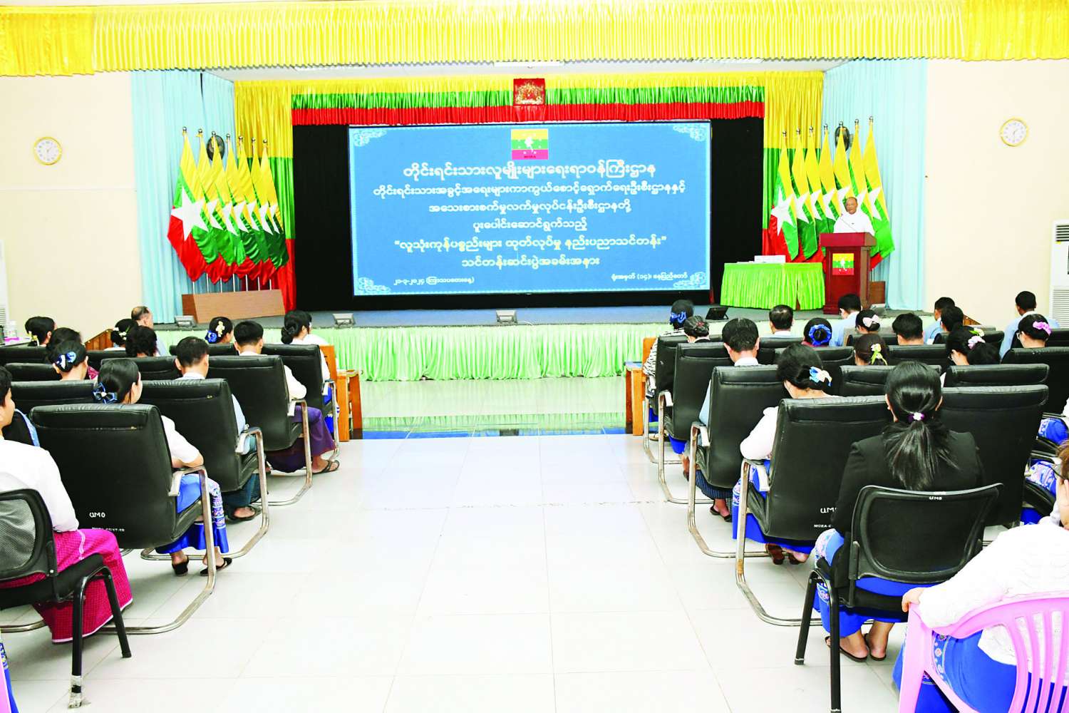 တိုင်းရင်းသားလူမျိုးများရေးရာဝန်ကြီးဌာနနှင့် သမဝါယမနှင့်ကျေးလက်ဖွံ့ဖြိုးရေးဝန်ကြီးဌာနတို့ ပူးပေါင်းကျင်းပသည့် “လူသုံးကုန်ပစ္စည်းများ ထုတ်လုပ်မှုနည်းပညာသင်တန်း” သင်တန်းဆင်းပွဲအခမ်းအနားကို ယနေ့မွန်းလွဲပိုင်းတွင် တိုင်းရင်းသားလူမျိုးများရေးရာဝန်ကြီးဌာန အစည်းအဝေးခန်းမ၌ ကျင်းပရာ တိုင်းရင်းသားလူမျိုးများရေးရာဝန်ကြီးဌာန ပြည်ထောင်စုဝန်ကြီး Jeng Phang နော်တောင်၊ ဒုတိယဝန်ကြီး ဦးဇော်အေးမောင်၊ အမြဲတမ်းအတွင်းဝန်၊ ညွှန်ကြားရေးမှူးချုပ်များ၊ ဒုတိယညွှန်ကြားရေးမှူးချုပ်များ၊ အရာထမ်း၊ အမှုထမ်းများ၊ သင်တန်းနည်းပြများနှင့် သင်တန်းသား သင်တန်းသူများ တက်ရောက်ကြသည်။