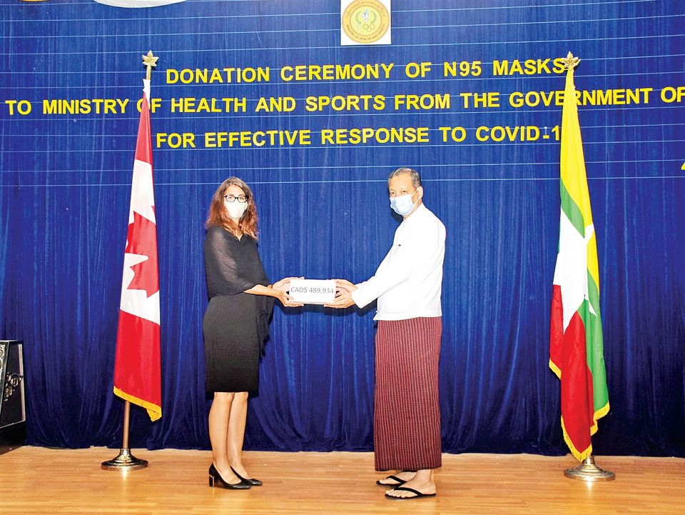 ယနေ့ လှူဒါန်းပွဲတွင် ကျန်းမာရေး နှင့် အားကစားဝန်ကြီးဌာန၏ ကိုဗစ်- ၁၉ ရောဂါ ကာကွယ်၊ ထိန်းချုပ်၊ ကုသရေးလုပ်ငန်းများ၌ အသုံးပြု ရန်အတွက် ကနေဒါနိုင်ငံက ကနေဒီယံ ဒေါ်လာ ၄၈၉၉၃၄ တန်ဖိုးရှိ N95 Mask များ လှူဒါန်းခဲ့ခြင်းဖြစ်ကြောင်း သိရသည်။
