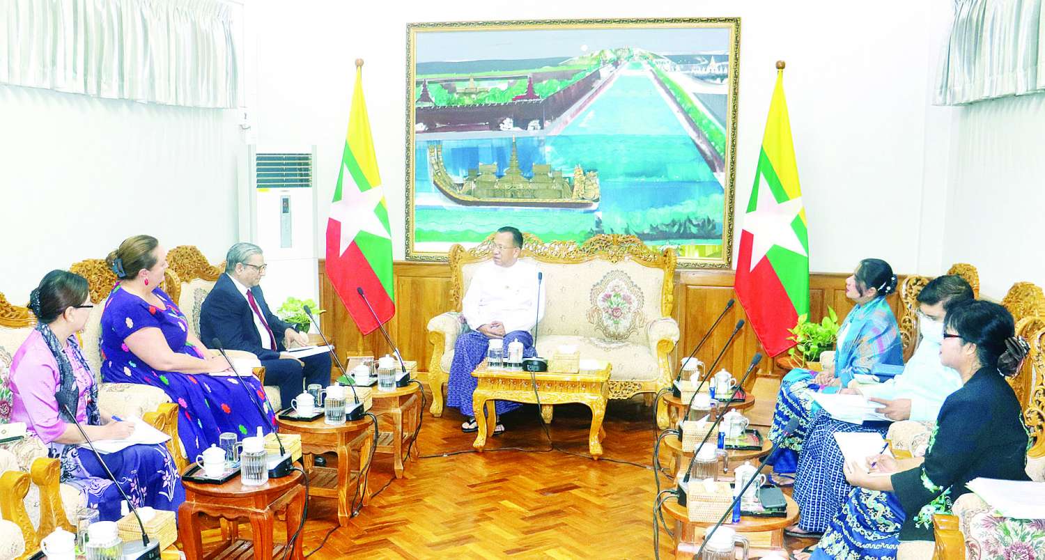 တွေ့ဆုံစဉ် UNOCHA က မြန်မာနိုင်ငံတွင် ဆောင်ရွက်လျက်ရှိသည့် လူသားချင်းစာနာ ထောက်ထားမှုဆိုင်ရာ အကူအညီပေးရေးလုပ်ငန်းအစီအစဉ်များနှင့် စပ်လျဉ်း၍ အမြင်ချင်းဖလှယ် ဆွေးနွေးကြသည်။