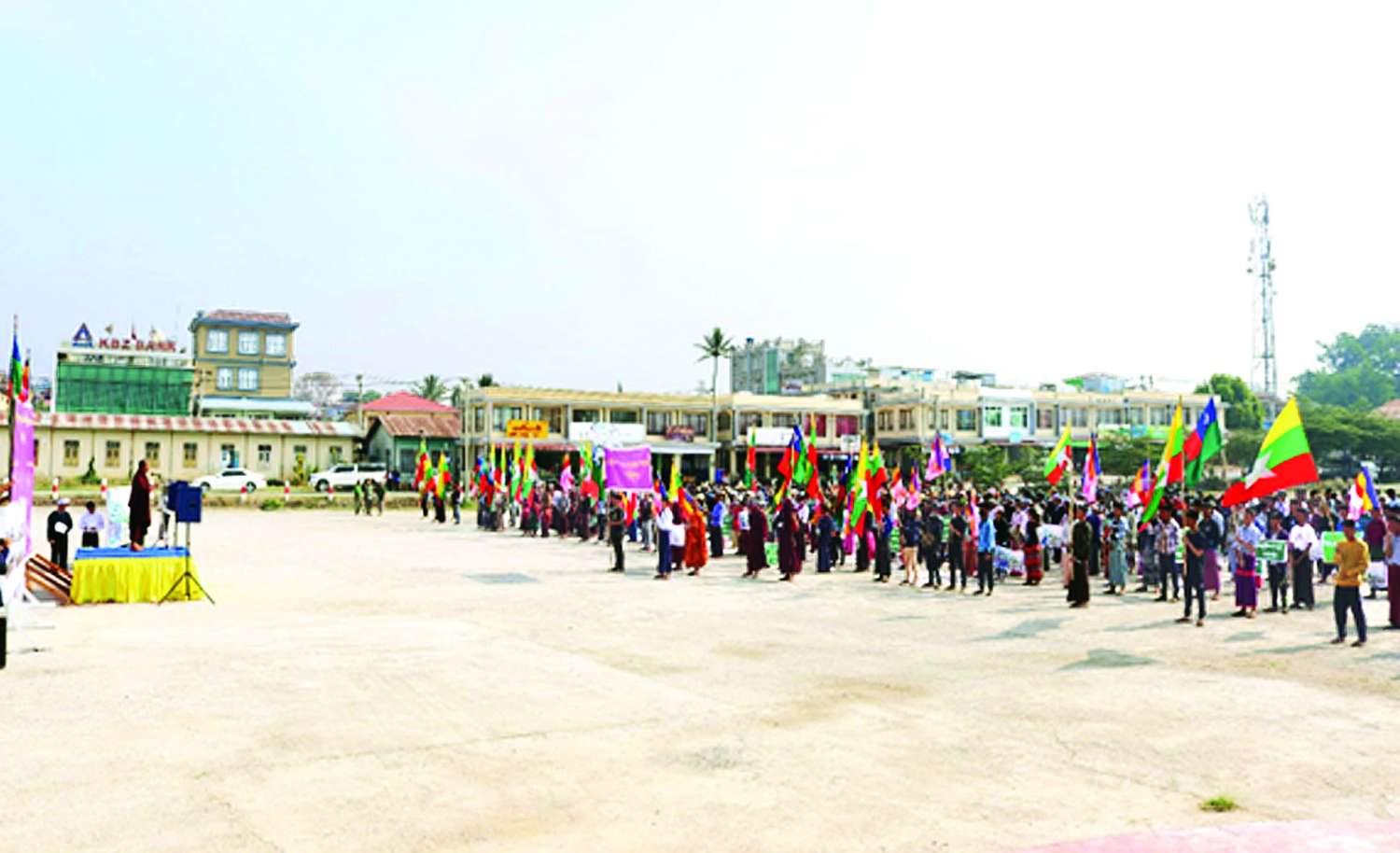 ချီတက်ရာ လမ်းတစ်လျှောက်တွင် “ KNDF ၊ PDF အမည်ခံ အကြမ်းဖက်အဖွဲ့ အလိုမရှိ၊ NUG ၊ CRPH အကြမ်းဖက်အဖွဲ့ အလိုမရှိ၊ TNLA အကြမ်းဖက်အဖွဲ့ အလိုမရှိ၊ ကျေးရွာနေအိမ်များ မီးရှို့ဖျက်ဆီးနေကြသည့် အကြမ်းဖက်အဖွဲ့ အလိုမရှိ၊ ပြည်သူလူထု လူမှုစီးပွားဘဝ ဖျက်ဆီးနေသည့် အကြမ်းဖက်အဖွဲ့ အလိုမရှိ၊ ဒေသတည်ငြိမ်အေးချမ်းမှု ဖျက်ဆီးသူ ဒို့ရန်သူ၊ အမျိုး ဘာသာသာသနာ ဖျက်ဆီးသည့် အကြမ်းဖက်အဖွဲ့အား ချေမှုန်းကြ ” စသည့် ကြွေးကြော်သံများကို သံပြိုင်ကြွေးကြော်ခဲ့ကြပြီး ဆန္ဒထုတ်ဖော်ပွဲကို အောင်မြင်စွာ ကျင်းပခဲ့ကြကြောင်း သတင်းရရှိသည်။