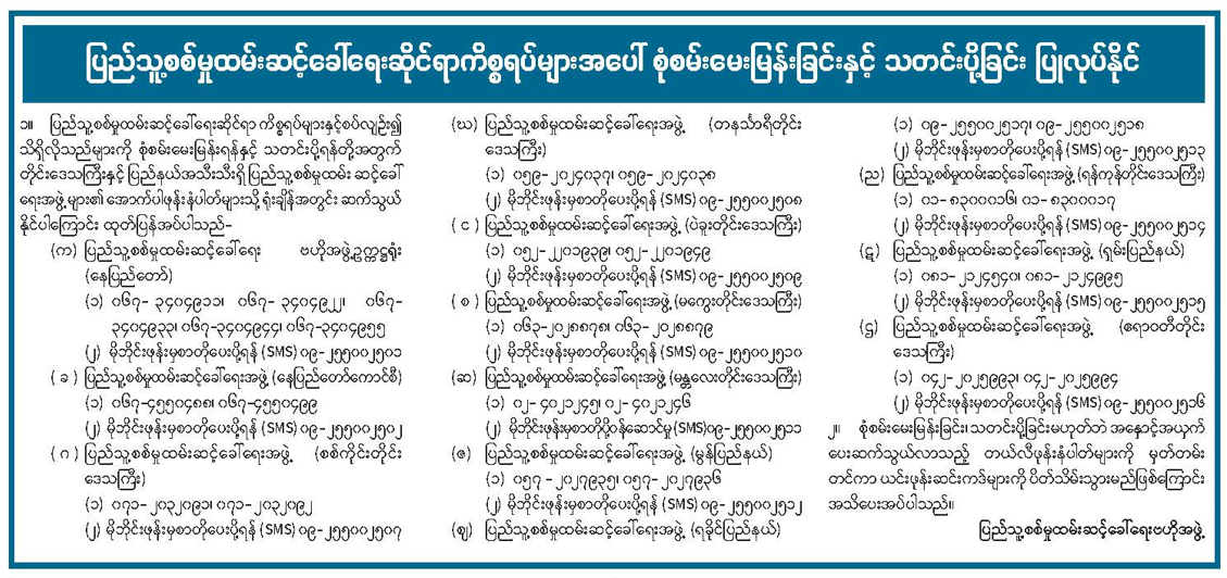 ပြည်သူ့စစ်မှုထမ်း ဆင့်ခေါ်ရေးဆိုင်ရာ ကိစ္စရပ်များအပေါ် စုံစမ်းမေးမြန်းခြင်းနှင့် သတင်းပို့ခြင်း ပြုလုပ်နိုင် 04/03/2024