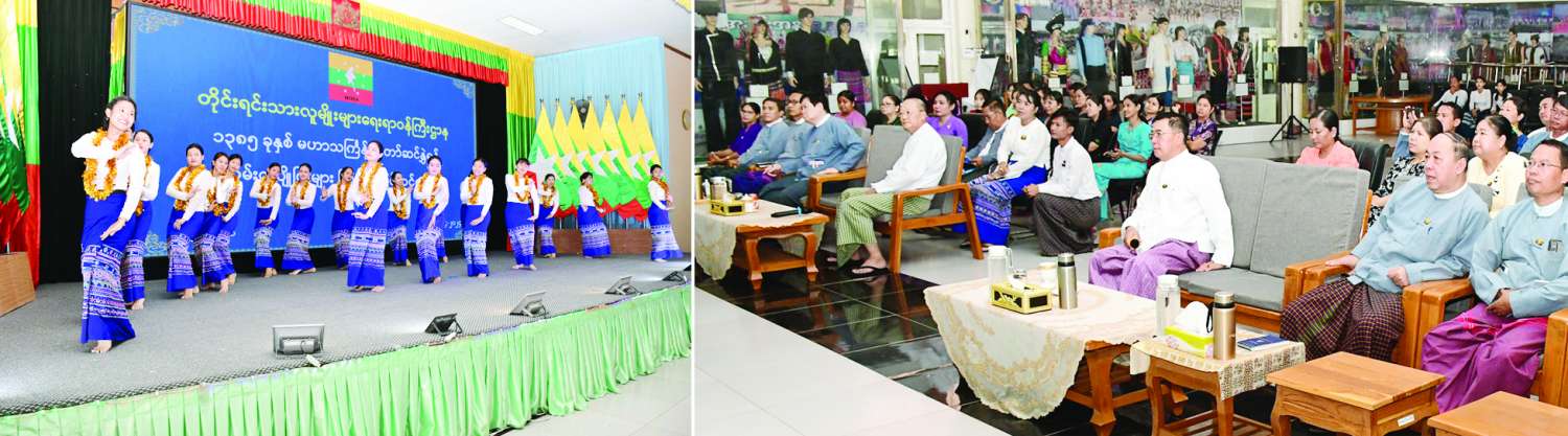 တိုင်းရင်းသားလူမျိုးများရေးရာဝန်ကြီးဌာန သင်္ကြန်ယိမ်းအဖွဲ့က ၁၃၈၅ ခုနှစ် နေပြည်တော် မြို့တော်ဝန်မဟာသင်္ကြန်မဏ္ဍပ်နှင့် နေပြည်တော်လမ်းလျှောက် သင်္ကြန်တိုင်းရင်းသားလူမျိုးများ ရေးရာဝန်ကြီးဌာနမဏ္ဍပ်တို့တွင် သင်္ကြန်အကအလှများဖြင့် ပါဝင်ဖျော်ဖြေဆင်နွှဲရန် ယနေ့နံနက်ပိုင်းက တိုင်းရင်းသားလူမျိုးများရေးရာဝန်ကြီးဌာန အစည်းအဝေးခန်းမ၌ ယိမ်းလှပျိုဖြူများ ယိမ်းအက ကြိုတင်လေ့ကျင့်နေမှုကို ပြည်ထောင်စုဝန်ကြီး Jeng Phang နော်တောင်၊ ဒုတိယဝန်ကြီး ဦးဇော်အေးမောင်၊ တာဝန်ရှိသူများနှင့် အရာထမ်း၊ အမှုထမ်းများ တက်ရောက်ကြည့်ရှုအားပေးကြသည်။