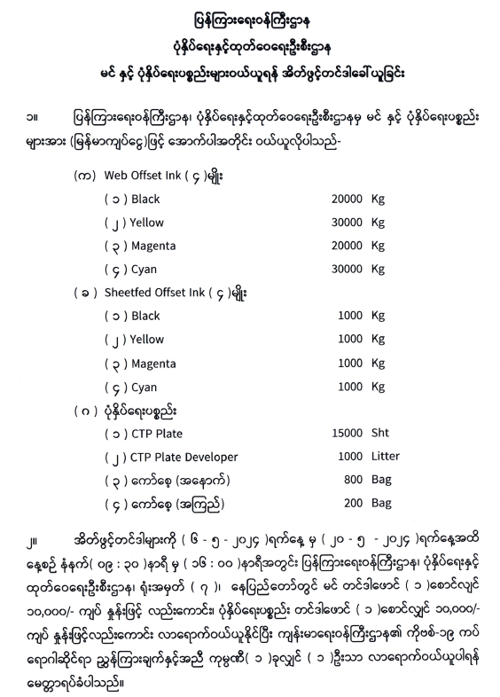 ရန်ကုန်မြို့နှင့် မန္တလေးမြို့အတွက် ရည်ညွှန်းလက်ကားဈေးနှုန်းများနှင့် ပြည်ထောင်စုနယ်မြေ နေပြည်တော်၊ တိုင်းဒေသကြီး/ပြည်နယ် မြို့တော်များအတွက် ရည်ညွှန်းလက်လီဈေးနှုန်းများ