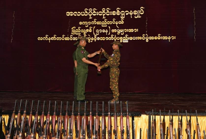 ဦးစွာ တိုင်းမှူးက အမှာစကားပြောကြားသည်။ ထို့နောက် တိုင်းမှူးနှင့် တာဝန်ရှိသူများက ပြည်သူ့စစ် (ဌာနေ) တပ်ဖွဲ့ဝင်များအတွက် လက်နက်များ တပ်ဆင်အပ်နှင်းပေးပြီး ထောက်ပံ့ပစ္စည်းများ ပေးအပ်ရာ ပြည်သူ့စစ် (ဌာနေ) တပ်ဖွဲ့ဝင်များကိုယ်စား တာဝန်ရှိသူတစ်ဦးက ကျေးဇူးတင်စကား ပြန်လည်ပြောကြားသည်။