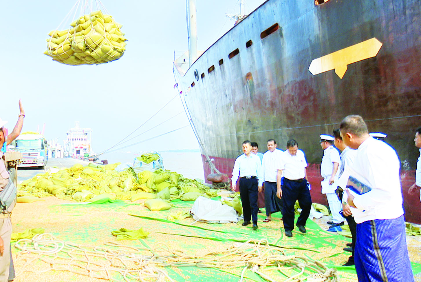 ပြည်ထောင်စုဝန်ကြီးသည် ညနေပိုင်းတွင် ဆူးလေဆိပ်ကမ်း၌ အိန္ဒိယနိုင်ငံ သို့ တင်ပို့မည့် MV. MANTA HERTIC သင်္ဘောပေါ်သို့ ပြောင်းတန်ချိန် ၂၆၆၀၀ သင်္ဘောတင်နေမှုကိုလည်းကောင်း မြန်မာစက်မှုဆိပ်ကမ်း (Myanmar Industrial Port-MIP) ၌ အိန္ဒိယနိုင်ငံသို့ တင်ပို့ရန်နှင့် MV. SEIYO HARMONY သင်္ဘောပေါ်သို့ ပြောင်းတန်ချိန် ၂၉၅၀၀ သင်္ဘောတင်နေမှုကိုလည်းကောင်း၊ စပိန်နိုင်ငံသို့ တင်ပို့မည့် MV. TURANC သင်္ဘောပေါ်သို့ ဆန်တန်ချိန် ၁၂၀၀၀ သင်္ဘောတင်နေမှုကို လည်းကောင်း၊ Adani ဆိပ်ကမ်း၌ ဗီယက်နမ်နိုင်ငံသို့ တင်ပို့မည့် MV. Dorg An သင်္ဘောဖြင့် ပြောင်းတန်ချိန် ၆၆၀၀ သင်္ဘောတင်နေမှုကိုလည်းကောင်း ကြည့်ရှုစစ်ဆေး၍ ၂၀၂၄-၂၀၂၅ ဘဏ္ဍာနှစ်တွင် ပို့ကုန်လျာထားချက် ပြည့်မီကျော်လွန်အောင် တင်ပို့နိုင်ရေးဆောင်ရွက်ရန်၊ တင်ပို့ရာ တွင် ဝယ်ယူသည့်နိုင်ငံမှ သတ်မှတ်ထားသော အရည်အသွေးစံချိန်စံညွှန်းအတိုင်း တင်ပို့နိုင်ရေး အလေးထားဆောင်ရွက်ရန်၊ တင်ပို့သည့်နိုင်ငံများ ဈေးကွက်မပျောက်စေရေး ထိန်းသိမ်းရန်နှင့် ဈေးကွက်အသစ်နိုင်ငံများရရှိရေး ကြိုးစားဆောင်ရွက်ရန်၊ ပြောင်းစေ့ကို တိရစ္ဆာန်အစားအစာအဖြစ် ပြောင်းလဲထုတ်လုပ်တင်ပို့နိုင်ရေး စီစဉ်ဆောင်ရွက်ရန်၊ သင်္ဘောများ အချိန်မီရရှိရေးနှင့် တင်ပို့ကုန်စည်များကို သင်္ဘောပေါ် အချိန်မီတင်နိုင်ရေး၊ ကုန်စည်များ အချိန်အခါမဟုတ် ရွာသွန်းသည့်မိုးဒဏ်မထိခိုက်စေရေး စီမံဆောင်ရွက်ရန်နှင့် ဘေးအန္တရာယ်ကင်းရှင်းရေး ဆောင်ရွက်ရန်တို့ကို မှာကြားခဲ့ကြောင်း သိရသည်။