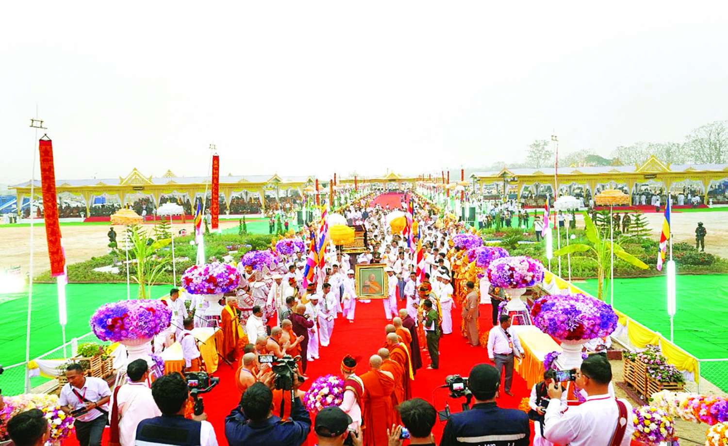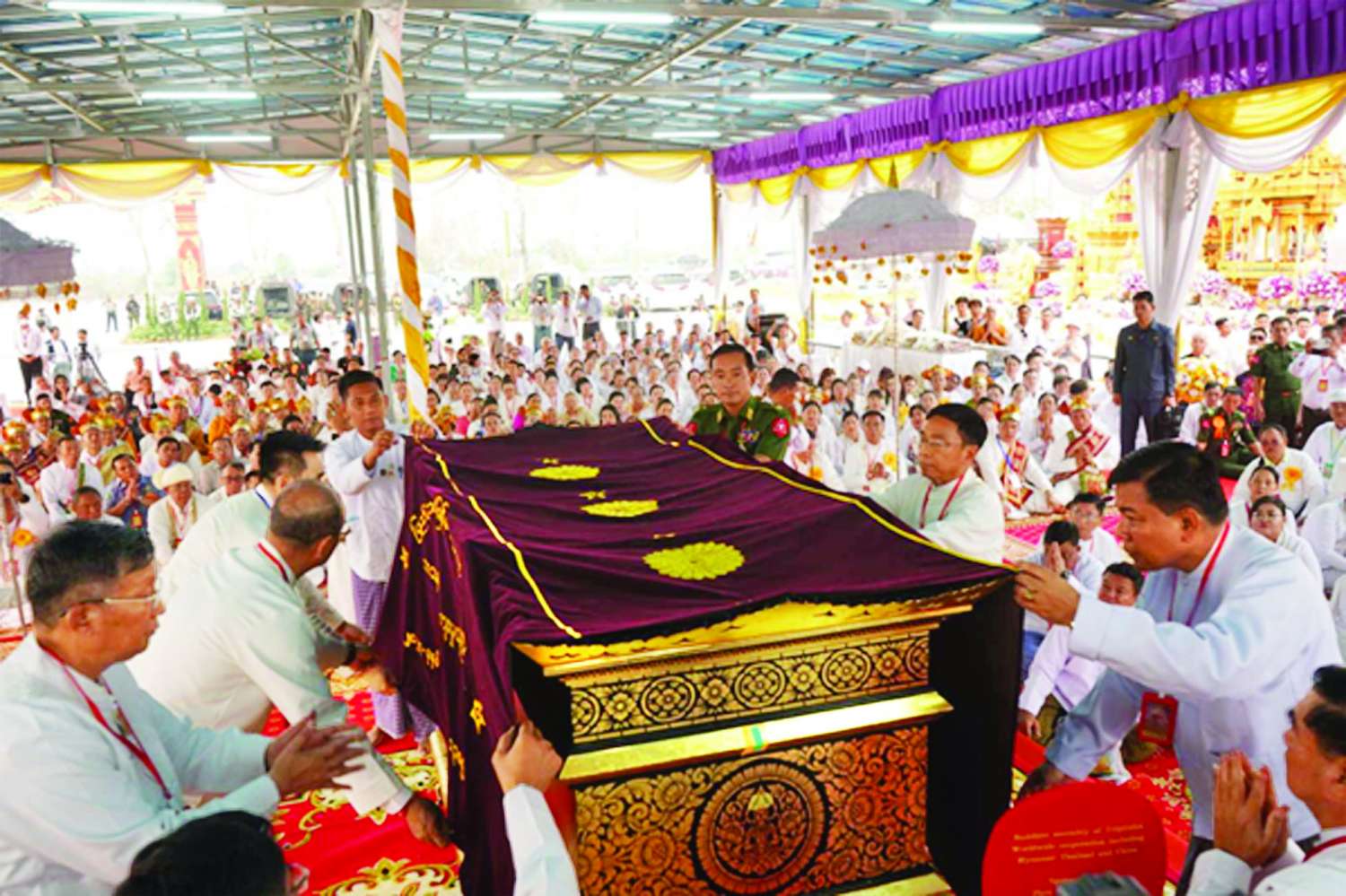 အဆိုပါ အန္တိမဈာပနသာဓုကီဠန ပူဇာသဘင်အခမ်းအနားသို့ နိုင်ငံတော်သံဃမဟာနာယက အဖွဲ့ဥက္ကဋ္ဌ အဂ္ဂမဟာပဏ္ဍိတ အဂ္ဂမဟာသဒ္ဓမ္မ ဇောတိကဓဇ သန်လျင်မင်းကျောင်း ဆရာတော် ဒေါက်တာ ဘဒ္ဒန္တစန္ဒိမာဘိဝံသ အမှူးပြုသည့် ဆရာတော်၊ သံဃာတော်များ ကြွရောက်ချီးမြှင့်တော်မူကြပြီး ညှိနှိုင်းကွပ်ကဲရေးမှူး (ကြည်း၊ ရေ၊ လေ)၊ ဗိုလ်ချုပ်ကြီး မောင်မောင်အေး၊ ကောင်စီအဖွဲ့ဝင်များ၊ ပြည်ထောင်စုဝန်ကြီး များ၊ ရှမ်းပြည်နယ်ဝန်ကြီးချုပ်၊ ကာကွယ်ရေးဦးစီးချုပ်ရုံးမှ အဆင့်မြင့်တပ်မတော်အရာရှိကြီးများ၊ တြိဂံဒေသတိုင်းစစ်ဌာနချုပ်တိုင်းမှူး၊ တိုင်းရင်းသားစာပေနှင့် ယဉ်ကျေးမှုအဖွဲ့များ၊ ဌာနဆိုင်ရာ တာဝန်ရှိသူများ၊ ဒေသခံပြည်သူ လူထုများ၊ ရပ်မိရပ်ဖများ၊ ဆရာတော်ဘုရားကြီး၏ ဆွေတော်၊ မျိုးတော်များနှင့် ဖိတ်ကြားထားသော ဧည့်သည်တော်များ စည်ကားသိုက်မြိုက်စွာ တက်ရောက်ပူဇော်ကြသည်။