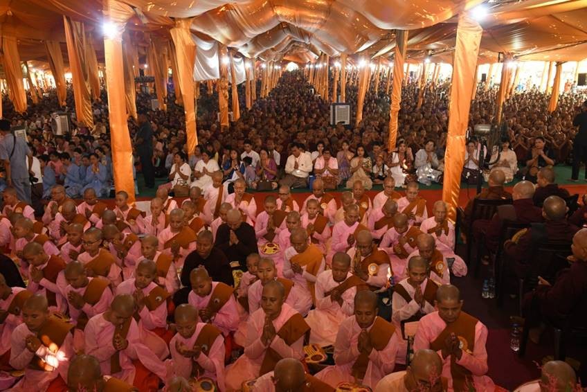 ဦးစွာ သဲဖြူတောရဓမ္မရိပ်သာနှင့် မဟာမြိုင်တောရဓမ္မရိပ်သာ ဆရာတော်ကြီး၏ အစီအစဉ်ဖြင့် ရှင်သာမဏေလောင်း ၅၆၀၂ ဦးအား သပိတ်၊ သင်္ကန်းနှင့် တူညီဝတ်စုံများ ထောက်ပံ့ပေးသည်။ ထို့နောက် ရှင်သာမဏေလောင်းများက ဆရာတော်ကြီး ဒေါက်တာ ဘဒ္ဒန္တ ပညာဇောတထံမှ သင်္ကန်းတောင်း၍ ဆယ်ပါးသီလခံယူ ဆောက်တည်ကြပြီးနောက် တိုင်းဒေသကြီးဝန်ကြီးချုပ်နှင့် တက်ရောက်လာသူများက ဆရာတော်ကြီး ဒေါက်တာ ဘဒ္ဒန္တ ပညာဇောတ အမှူးပြုသော သံဃာတော်များနှင့် ရှင်သာမဏေများကို ဆွမ်းနှင့်လှူဖွယ်ပစ္စည်းများ ဆက်ကပ်လှူဒါန်းခဲ့ကြသည်။