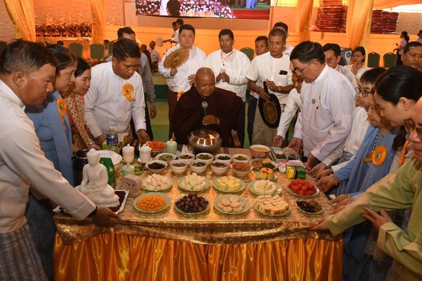 ထို့နောက် တိုင်းဒေသကြီးဝန်ကြီးချုပ်၊ တိုင်းမှူးနှင့် တက်ရောက်လာသူများက ကြွရောက်လာသော ဆရာတော်၊ သံဃာတော်များအား နေ့ဆွမ်းဆက်ကပ်လှူဒါန်းခဲ့ကြကြောင်း သတင်းရရှိသည်။
