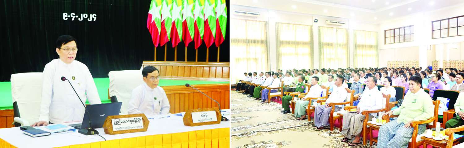 ထို့နောက် နေပြည်တော်ကောင်စီဥက္ကဋ္ဌက ပြည်ထောင်စုနယ်မြေ၊ နေပြည်တော်အတွင်း ၂၀၂၄ ခုနှစ်၊ လူဦးရေနှင့် အိမ်အကြောင်းအရာသန်းခေါင်စာရင်းကောက်ယူရေးလုပ်ငန်းနှင့်ပတ်သက်၍ ကော်မတီအဆင့်ဆင့် ဖွဲ့စည်းထားရှိမှု၊ ကြိုတင်ပြင်ဆင်ခြင်းလုပ်ငန်းများ ဆောင်ရွက်နေမှုနှင့် ဆက်လက်ဆောင်ရွက်မည့် လုပ်ငန်းအစီအစဉ်များကို ရှင်းလင်းပြောကြားသည်။