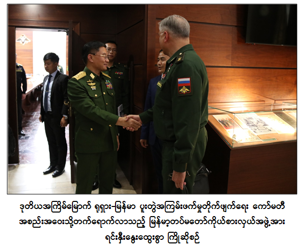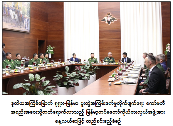 အကြမ်းဖက်မှုတိုက်ဖျက်ရေးနယ်ပယ်တွင် တုံ့ပြန်မှုများ လျှင်မြန်စွာပြုလုပ်နိုင်ရန်ရည်ရွယ်၍ ဒုတိယအကြိမ်မြောက် ရုရှား-မြန်မာ ပူးတွဲအကြမ်းဖက်မှုတိုက်ဖျက်ရေးကော်မတီအစည်းအဝေးပထမရက်အား ယနေ့တွင် ရုရှားဖက်ဒရေးရှင်းနိုင်ငံ၊ မော်စကိုမြို့ရှိ ရုရှားကာကွယ်ရေးဝန်ကြီးဌာန၌ ကျင်းပပြုလုပ်ခဲ့သည်။
