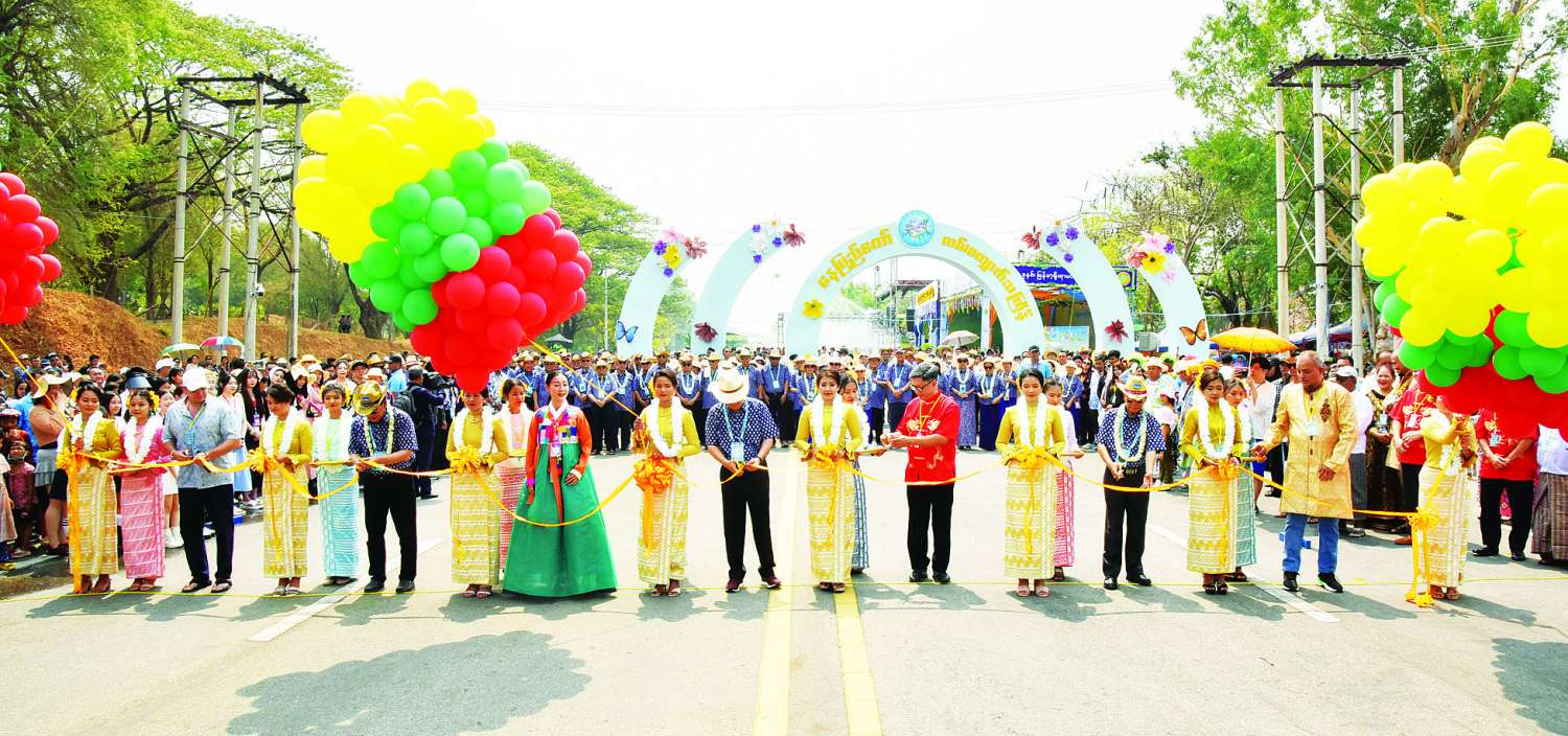 ထို့နောက် နေပြည်တော်မြို့တော်ဝန် မဟာသင်္ကြန်မဏ္ဍပ်ဖွင့်ပွဲအပြီးတွင် နေပြည်တော်လမ်းလျှောက်သင်္ကြန်ဖွင့်ပွဲအခမ်းအနားကို ပျဉ်းမနား-တောင်ညိုလမ်းပေါ်ရှိ နေပြည်တော်မြို့တော်ဝန်မဏ္ဍပ်အနီးမှ စည်ပင်ဧည့်ရိပ်သာလမ်းဆုံ ဧရိယာအထိရှိလမ်းလျှောက်သင်္ကြန် သင်္ကြန်မုခ်ဦးရှေ့၌ ဆက်လက်ကျင်းပရာ နိုင်ငံတော်စီမံအုပ်ချုပ်ရေးကောင်စီ အတွင်းရေးမှူး၊ ပြန်ကြားရေးဝန်ကြီးဌာန ပြည်ထောင်စုဝန်ကြီး၊ နေပြည်တော်မြို့တော်ဝန်၊ ရုရှားဖက်ဒရေးရှင်းနိုင်ငံမှ Mr. Artemi Alimov Representative of Fund RC- Investments in Myanmar၊ မြန်မာ - အိန္ဒိယ - တရုတ် ပူးပေါင်းဆောင်ရွက်ရေးနှင့် စီးပွားဖွံ့ဖြိုးတိုးတက်ရေးအသင်း၏ အလုပ်အမှုဆောင်များ ဖြစ်ကြသည့် ဦးတင့်နိုင်နှင့် ဦးအောင်မြင့်၊ ကိုရီးယားနိုင်ငံမှ သရုပ်ဆောင်ဘတ်အွန်း ဟီးတို့က အခမ်းအနားကို ဖဲကြိုးဖြတ်ဖွင့်လှစ်ပေးကြသည်။