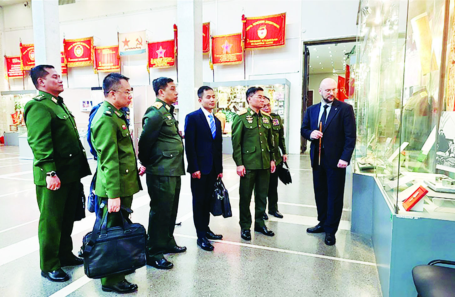 ဒုတိယအကြိမ် ရုရှား-မြန်မာ ပူးတွဲအကြမ်းဖက်မှု တိုက်ဖျက်ရေးကော်မတီအစည်းအဝေးသို့ တက်ရောက်ရန်အတွက် ရုရှားဖက်ဒရေးရှင်းနိုင်ငံသို့ ရောက်ရှိနေသော ကာကွယ်ရေးဦးစီးချုပ်ရုံး (ကြည်း) မှ ဒုတိယဗိုလ်ချုပ်ကြီးကျော်စွာလင်းဦးဆောင်သော မြန်မာ့တပ်မတော်ကိုယ်စားလှယ်အဖွဲ့သည် ယမန်နေ့နေ့လယ်ပိုင်းတွင် ရုရှားဖက်ဒရေးရှင်းနိုင်ငံ ဗဟိုစစ်သမိုင်းပြတိုက် (Central Museum of the Armed Forces of the Russian Federation) သို့ သွားရောက်လေ့လာခဲ့ရာ တာဝန်ရှိသူများက ကြိုဆို၍ Senior Researcher Kostantin Morozov က ပြတိုက်အတွင်း လိုက်လံရှင်းလင်းပြသသည်။ ဗဟိုစစ်သမိုင်းပြတိုက်ရှိ ဒုတိယကမ္ဘာစစ်အတွင်း စစ်ပွဲဆိုင်ရာမှတ်တမ်း များနှင့် အောင်ပွဲရအထိမ်းအမှတ်များ ပြသထားသည့် Victory Hall၊ ၁၉၄၆ ခုနှစ်မှ လက်ရှိကာလအထိ ရုရှားတပ်မတော်၏ လှုပ်ရှားဆောင်ရွက်မှု သမိုင်းမှတ်တမ်းများအား ကြည့်ရှုလေ့လာခဲ့ကြောင်းသိရသည်။