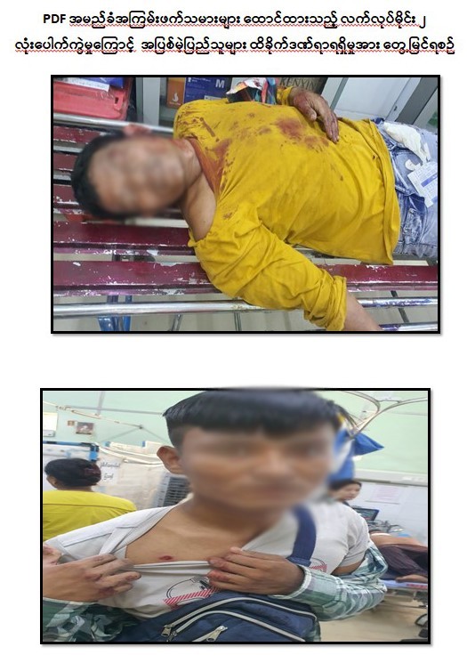 အထက်ပါဖြစ်စဉ်မှ ထိခိုက်ဒဏ်ရာရရှိသူများအား လုံခြုံရေးတပ်ဖွဲ့ဝင်များက မန္တလေးပြည်သူ့ဆေးရုံကြီးသို့ ပို့ဆောင်ဆေးကုသမှုခံယူစေလျက်ရှိကြောင်း သိရှိရသည်။