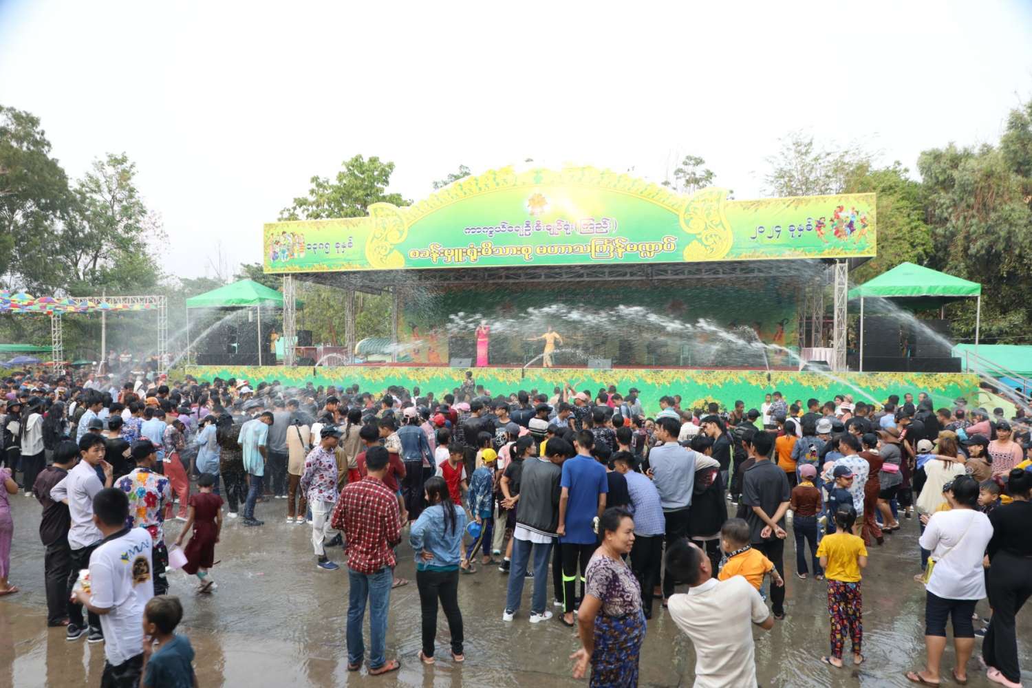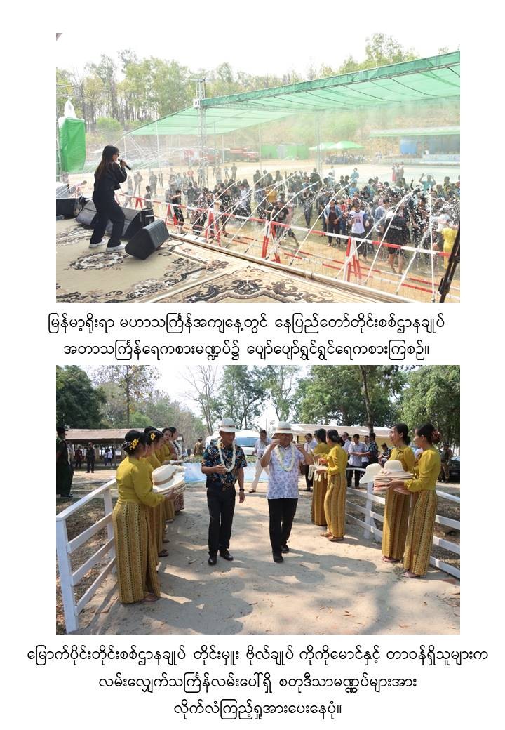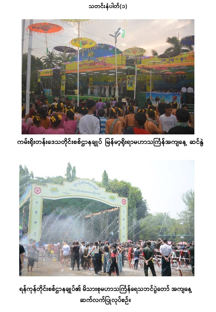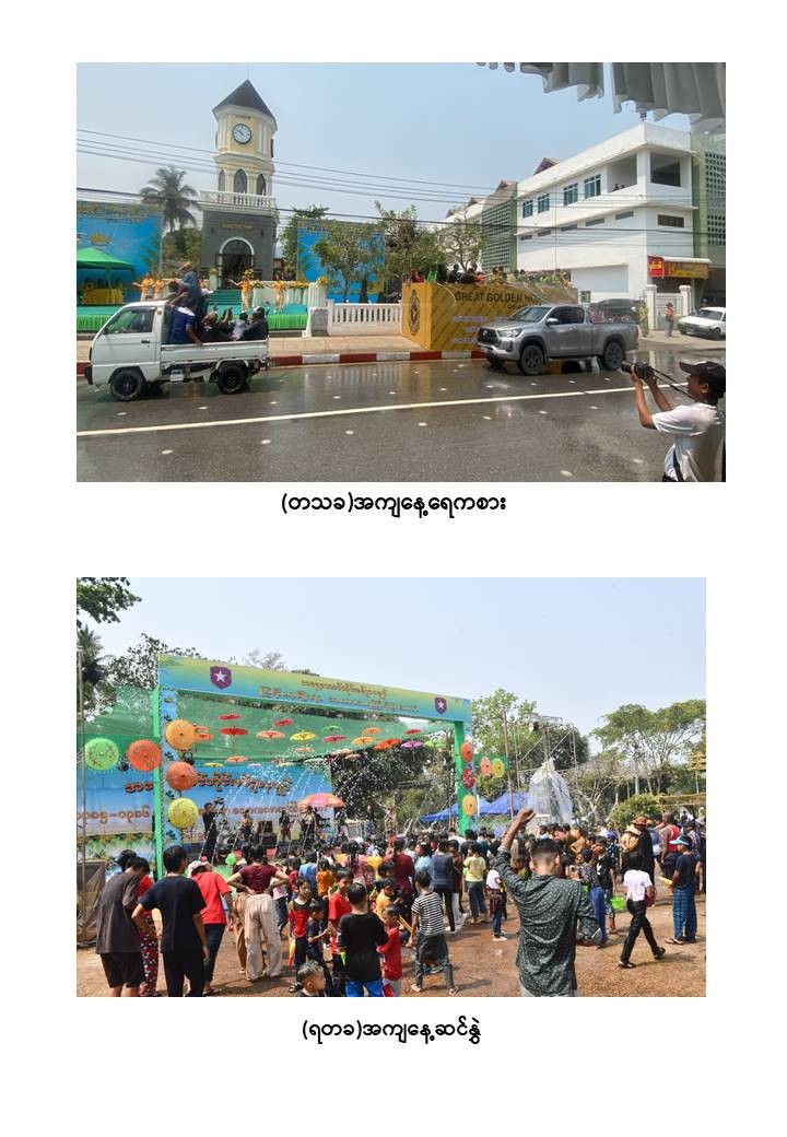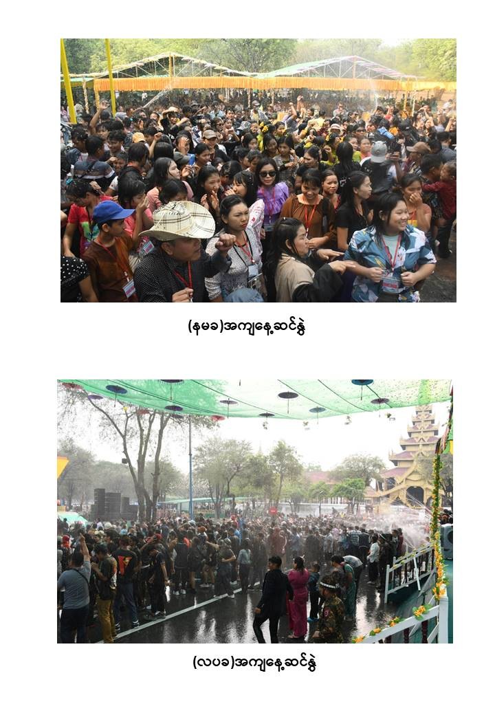 မြန်မာသက္ကရာဇ် ၁၃၈၅ ခုနှစ်မှ ၁၃၈၆ ခုနှစ်သို့ ကူးပြောင်းမည့် မြန်မာ့ရိုးရာမဟာသင်္ကြန်ပွဲတော်အကျနေ့တွင် တိုင်းဒေသကြီးနှင့် ပြည်နယ်များရှိ မြို့နယ်များ၊ တိုင်းစစ်ဌာနချုပ်အသီးသီးရှိ ရေကစားမဏ္ဍပ်များ၌ အရာရှိ၊ စစ်သည်၊ မိသားစုများ၊ ယိမ်းအကအဖွဲ့များ၊ ခေတ်ပေါ်တေးဂီတအဖွဲ့များ၊ အတာရေသဘင်ပွဲဆင်နွှဲသူများဖြင့် စည်ကားသိုက်မြိုက်စွာ ဆက်လက်ဆင်နွှဲလျက်ရှိသည်။