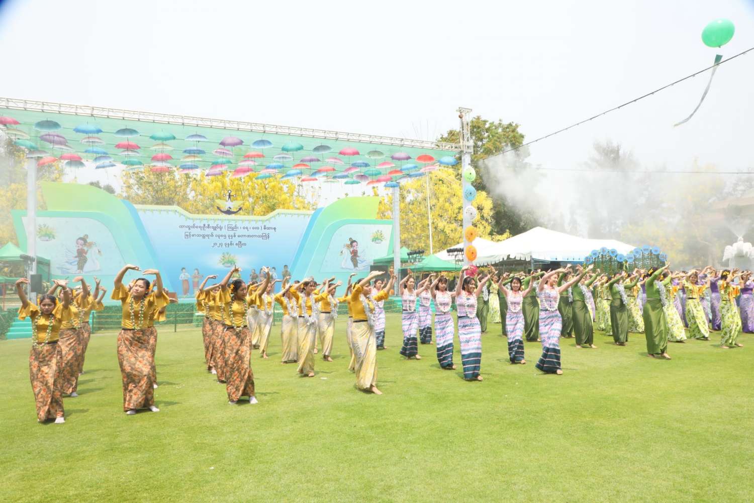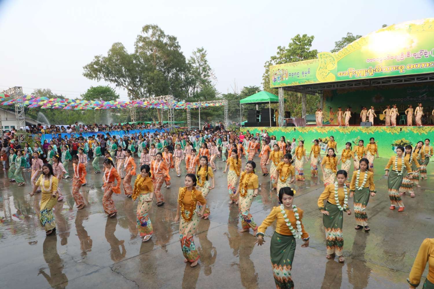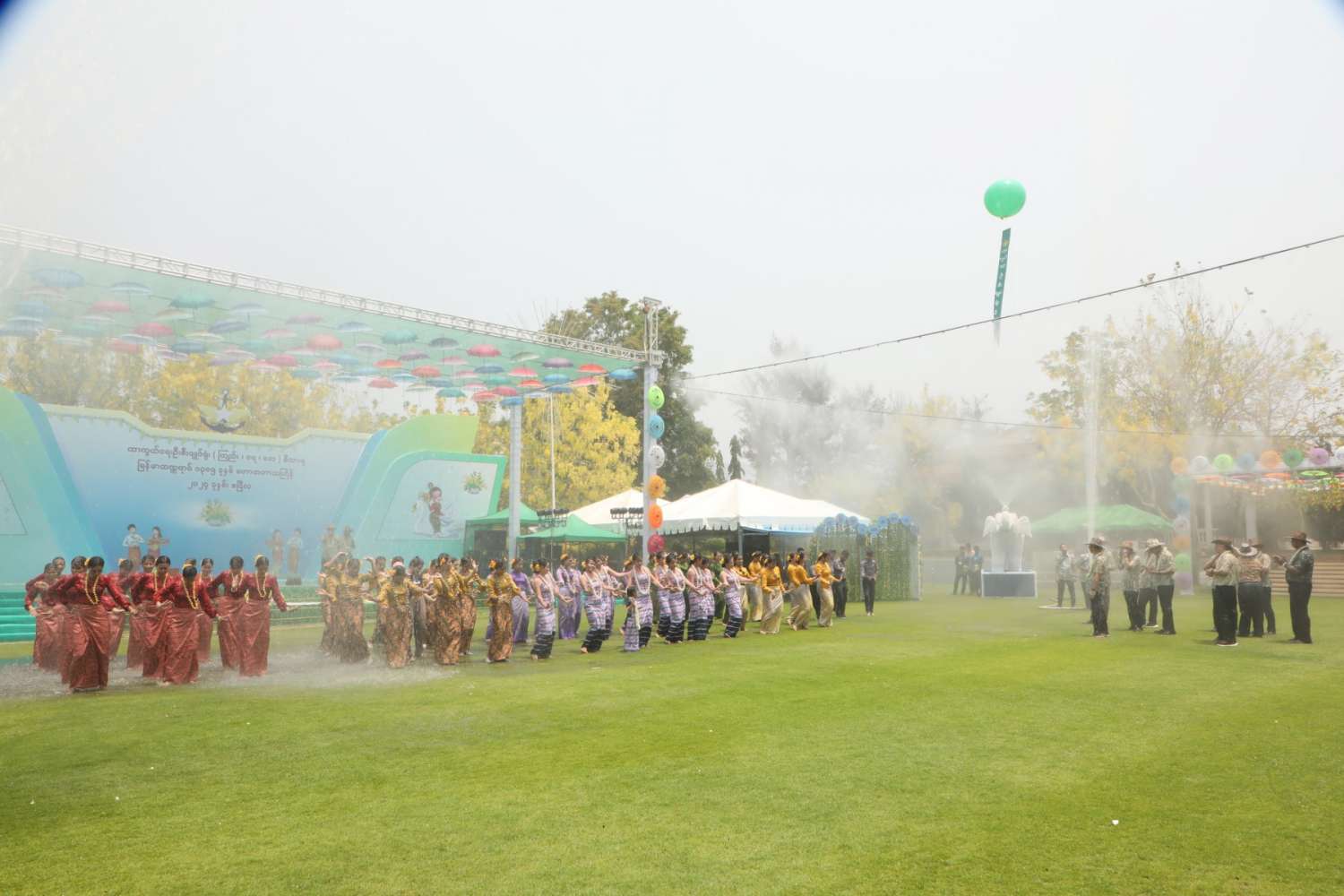 မြန်မာသက္ကရာဇ် ၁၃၈၅ ခုနှစ်မှ ၁၃၈၆ ခုနှစ်သို့ ကူးပြောင်းမည့် မြန်မာ့ရိုးရာမဟာသင်္ကြန်ပွဲတော်အကျနေ့တွင် တိုင်းဒေသကြီးနှင့် ပြည်နယ်များရှိ မြို့နယ်များ၊ တိုင်းစစ်ဌာနချုပ်အသီးသီးရှိ ရေကစားမဏ္ဍပ်များ၌ အရာရှိ၊ စစ်သည်၊ မိသားစုများ၊ ယိမ်းအကအဖွဲ့များ၊ ခေတ်ပေါ်တေးဂီတအဖွဲ့များ၊ အတာရေသဘင်ပွဲဆင်နွှဲသူများဖြင့် စည်ကားသိုက်မြိုက်စွာ ဆက်လက်ဆင်နွှဲလျက်ရှိသည်။