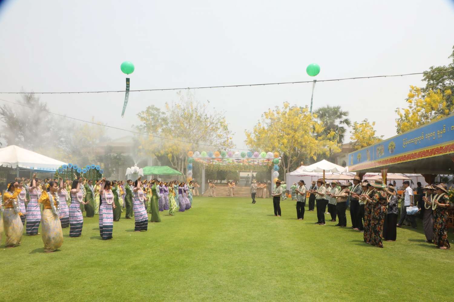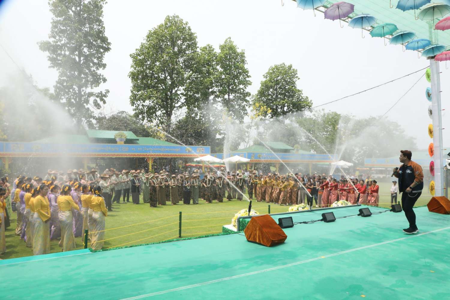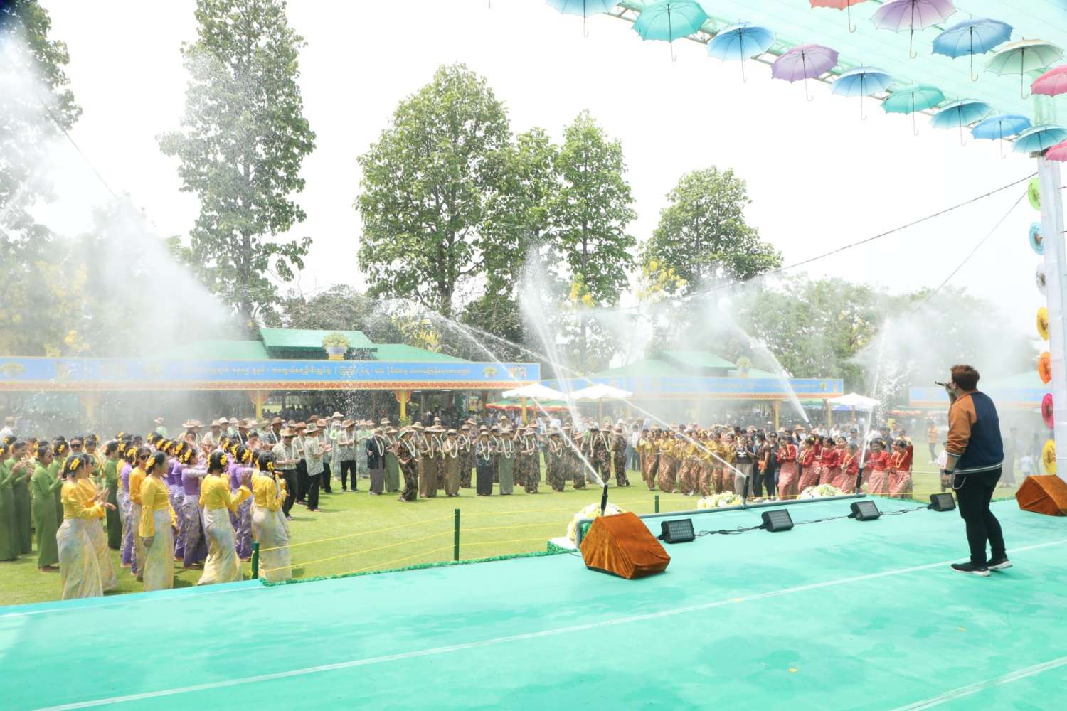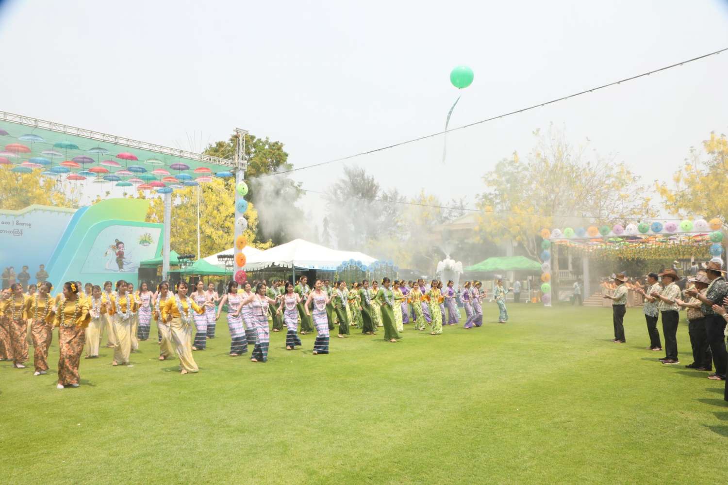မြန်မာသက္ကရာဇ် ၁၃၈၅ ခုနှစ်မှ ၁၃၈၆ ခုနှစ်သို့ ကူးပြောင်းမည့် မြန်မာ့ရိုးရာမဟာသင်္ကြန်ပွဲတော်အကျနေ့တွင် တိုင်းဒေသကြီးနှင့် ပြည်နယ်များရှိ မြို့နယ်များ၊ တိုင်းစစ်ဌာနချုပ်အသီးသီးရှိ ရေကစားမဏ္ဍပ်များ၌ အရာရှိ၊ စစ်သည်၊ မိသားစုများ၊ ယိမ်းအကအဖွဲ့များ၊ ခေတ်ပေါ်တေးဂီတအဖွဲ့များ၊ အတာရေသဘင်ပွဲဆင်နွှဲသူများဖြင့် စည်ကားသိုက်မြိုက်စွာ ဆက်လက်ဆင်နွှဲလျက်ရှိသည်။