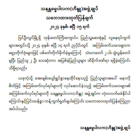 သနန္တနဓမ္မပါလက (ဟိန္ဒူ) အဖွဲ့ချုပ်သဘောထားထုတ်ပြန်ချက်