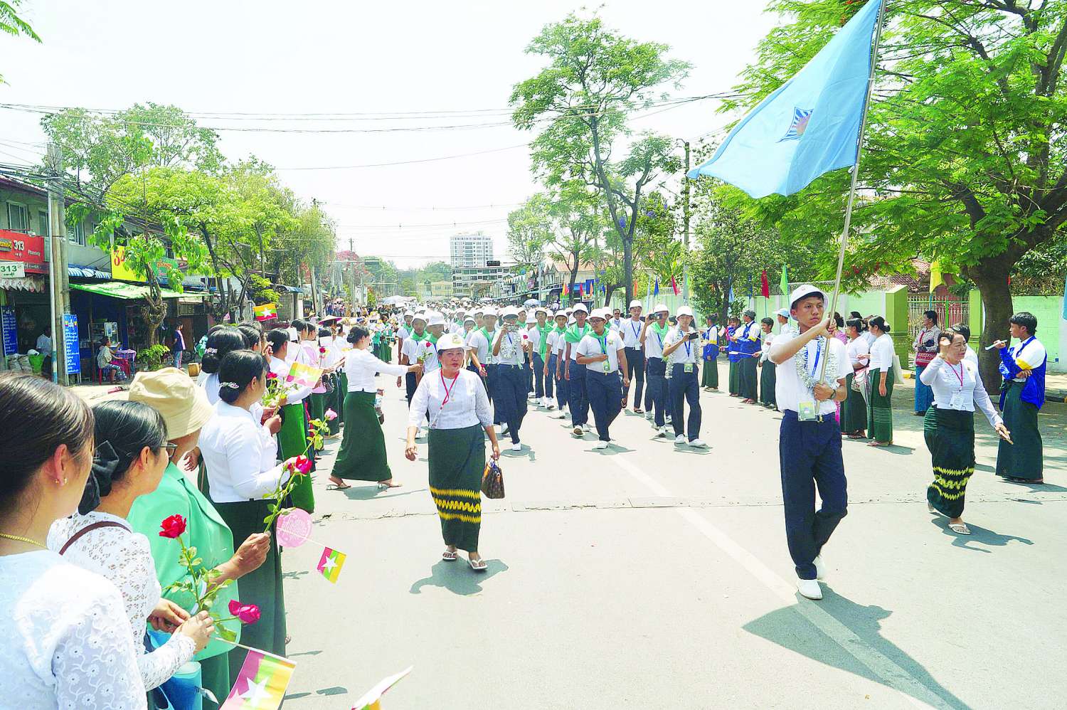 ယင်းနောက် ကလောမြို့မှ ဆက်လက်ထွက်ခွာကြပြီး လူရည်ချွန်စခန်းဖွင့်လှစ်ထားသည့် တောင်ကြီးမြို့ အမှတ်(၁)အခြေခံပညာအထက်တန်းကျောင်းသို့ မွန်းလွဲ ၁၂ နာရီခွဲတွင် ရောက်ရှိကြရာ ပြည်နယ်ပညာရေးဦးစီးဌာနမှ ဒုတိယညွှန်ကြားရေးမှူးချုပ် ဦးမြင့်လွင်နှင့် တာဝန်ရှိသူများ၊ ဆရာ ဆရာမများ၊ ကျောင်းသား ကျောင်းသူများနှင့် ဘင်ခရာတပ်ဖွဲ့တို့က အလံငယ်လေးများ ဝှေ့ယမ်းကာ ကြိုဆိုခဲ့ကြကြောင်း သိရှိရသည်။