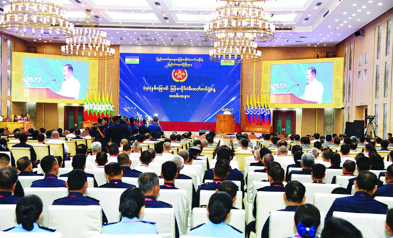 မိမိတို့အနေဖြင့် စစ်မှန်စည်းကမ်းပြည့်ဝသည့် ပါတီစုံဒီမိုကရေစီစနစ်ခိုင်မာစေရေးနှင့် ဒီမိုကရေစီနှင့်ဖက်ဒရယ်စနစ်ကို အခြေခံသည့် ပြည်ထောင်စုတည်ဆောက်ရေးကို ရည်မှန်းချက်အောင်မြင်အောင် ဆောင်ရွက်နေသည့် ယခုလိုအချိန်တွင် နိုင်ငံတော်စီမံအုပ်ချုပ်ရေးကောင်စီက ချမှတ်ထားသည့် ရှေ့လုပ်ငန်းစဉ် (၅)ရပ်၊ ဦးတည်ချက်(၉)ရပ်ကို အပြည့်အဝအောင်မြင်ရန်အတွက် မီးသတ်တပ်ဖွဲ့ဝင်များအနေဖြင့် သက်ဆိုင်ရာကဏ္ဍများအလိုက် ဦးလည်မသုန် အလေးအနက်ထားပြီး တာဝန်သိသိ၊ သစ္စာရှိရှိ အကောင်အထည်ဖော် ဆောင်ရွက်သွားကြရန် ဖြစ်ကြောင်း။