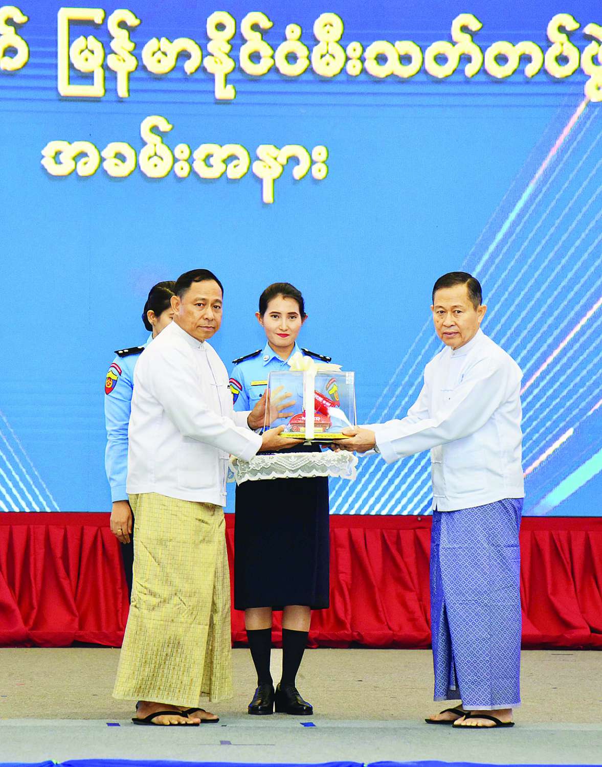 ထို့နောက် နိုင်ငံတော်စီမံအုပ်ချုပ်ရေးကောင်စီ ဒုတိယဥက္ကဋ္ဌ ဒုတိယဝန်ကြီးချုပ်ထံသို့ နိုင်ငံတော်စီမံအုပ်ချုပ်ရေးကောင်စီအဖွဲ့ဝင် ပြည်ထဲရေးဝန်ကြီးဌာန ပြည်ထောင်စုဝန်ကြီး ဒုတိယဗိုလ်ချုပ်ကြီး ရာပြည့်က (၇၈) နှစ်မြောက် မြန်မာနိုင်ငံမီးသတ် တပ်ဖွဲ့နေ့အထိမ်းအမှတ် အမှတ်တရလက်ဆောင်ပေးအပ်သည်။