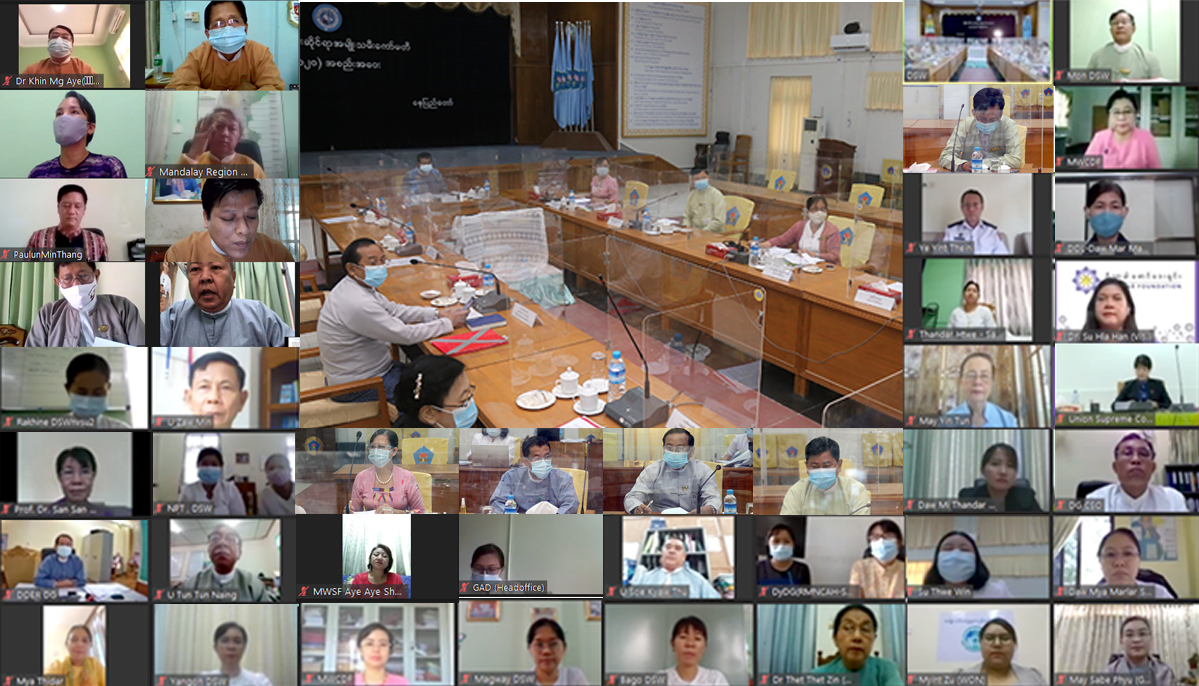 မြန်မာနိုင်ငံလုံးဆိုင်ရာ အမျိုးသမီးကော်မတီ (၂/၂၀၂၀)အစည်းအဝေးအား ယနေ့ နံနက် ၉ နာရီခွဲတွင် လူမှုဝန်ထမ်း၊ ကယ်ဆယ်ရေးနှင့် ပြန်လည်နေရာချထားရေးဝန်ကြီးဌာန၊ စုပေါင်း အစည်းအဝေးခန်းမ၌ Virtual စနစ်ဖြင့်ကျင်းပသည်။