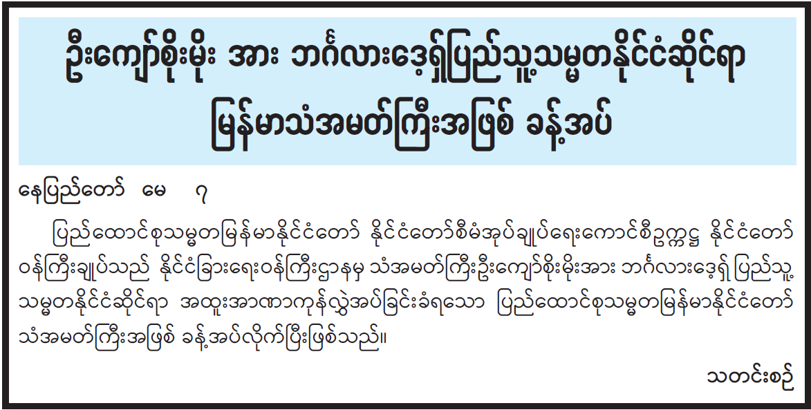 မဲစာရင်းကပ်ထားကြေညာခြင်းနှင့်စပ်လျဉ်း၍ မဲဆန္ဒရှင်ပြည်သူများသို့ အသိပေးကြေညာချက်