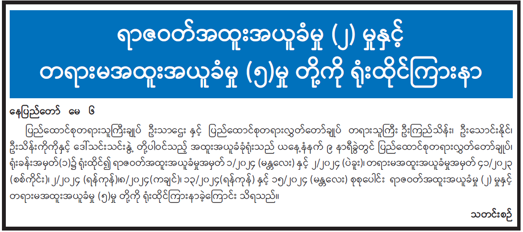 ရာဇဝတ်အထူးအယူခံမှု (၂) မှုနှင့် တရားမအထူးအယူခံမှု (၅)မှု တို့ကို ရုံးထိုင်ကြားနာ