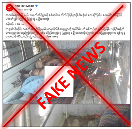 တနင်္သာရီတိုင်းဒေသကြီး၊ သရက်ချောင်းမြို့နယ်၊ ကနက်သီရိကျေးရွာကို မေလ ၁၀ ရက်နေ့က တိုက်ပွဲဖြစ်ပွားခြင်းမရှိဘဲ တပ်မတော်က ရဟတ်ယာဉ် ၂ စီး၊ ဂျက်ဖိုက်တာ ၁ စီးဖြင့် ဗုံးကျဲတိုက်ခိုက်ခဲ့ပြီး၊ ရေကြောင်းမှလည်း စစ်သင်္ဘောများဖြင့် လက်နက်ကြီးများ အဆက်မပြတ် ပစ်ခတ်တိုက်ခိုက်ခဲ့ခြင်းတို့ကြောင့် ပြည်သူ ၃ ဦး သေဆုံးခဲ့သည်ဟု အကြမ်းဖက်အားပေး ပြည်ဖျက်မီဒီယာ Khit Thit က လူမှုကွန်ရက်ပေါ်တွင် မဟုတ်မမှန်လုပ်ကြံရေးသားကာ ဝါဒဖြန့်နေသည်ကို တွေ့ရှိရပါသည်။