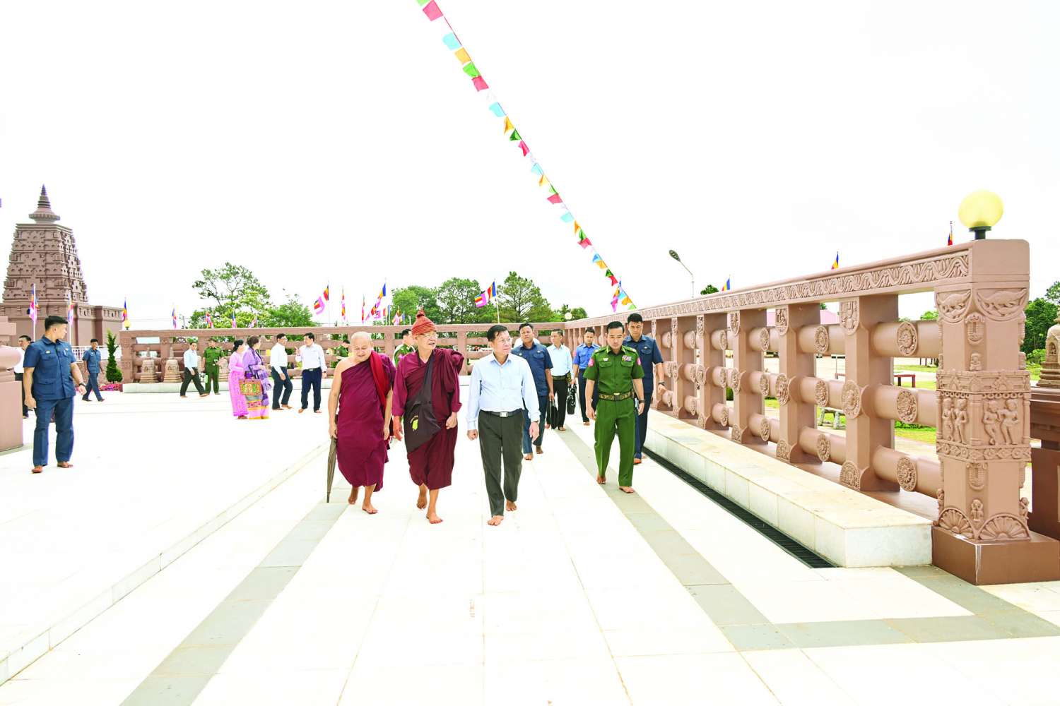ထို့နောက် နိုင်ငံတော်စီမံအုပ်ချုပ်ရေးကောင်စီဥက္ကဋ္ဌ နိုင်ငံတော်ဝန်ကြီးချုပ်နှင့်ဇနီး၊ အဖွဲ့ဝင်များသည် ဗုဒ္ဓဥယျာဉ်ပရိဝုဏ်တော်အတွင်း တည်ထားကိုးကွယ်မည့် လောကသရဖူဘုရားကြီး တည်ဆောက်ရေးလုပ်ငန်းသို့ရောက်ရှိကြပြီး တည်ထားကိုးကွယ်ရန် အတည်ပြုနေရာ ဆောင်ရွက်ထားရှိမှု၊ ကျောက်ထုတ်လုပ်ရေးစက်ရုံမှ ဘုရားတည်ဆောက်ရေးအတွက် ကျောက်များ ထုတ်လုပ်ထားရှိမှု၊ လောကသရဖူဘုရားကြီး၏ ပုံတူပုံစံငယ်လျာထား ပူဇော်ထားရှိမှုအခြေအနေများကိုကြည့်ရှုပြီး ဝစီပိတ်ဆရာတော်ကြီး၏ မိန့်ကြားမှုများအပေါ် လိုအပ်သည်များ တင်ပြလျှောက်ထားကာ တာဝန်ရှိသူများ၏ လုပ်ငန်းဆောင်ရွက်နေမှုတင်ပြချက်များအပေါ် လိုအပ်သည်များ မှာကြားသည်။
