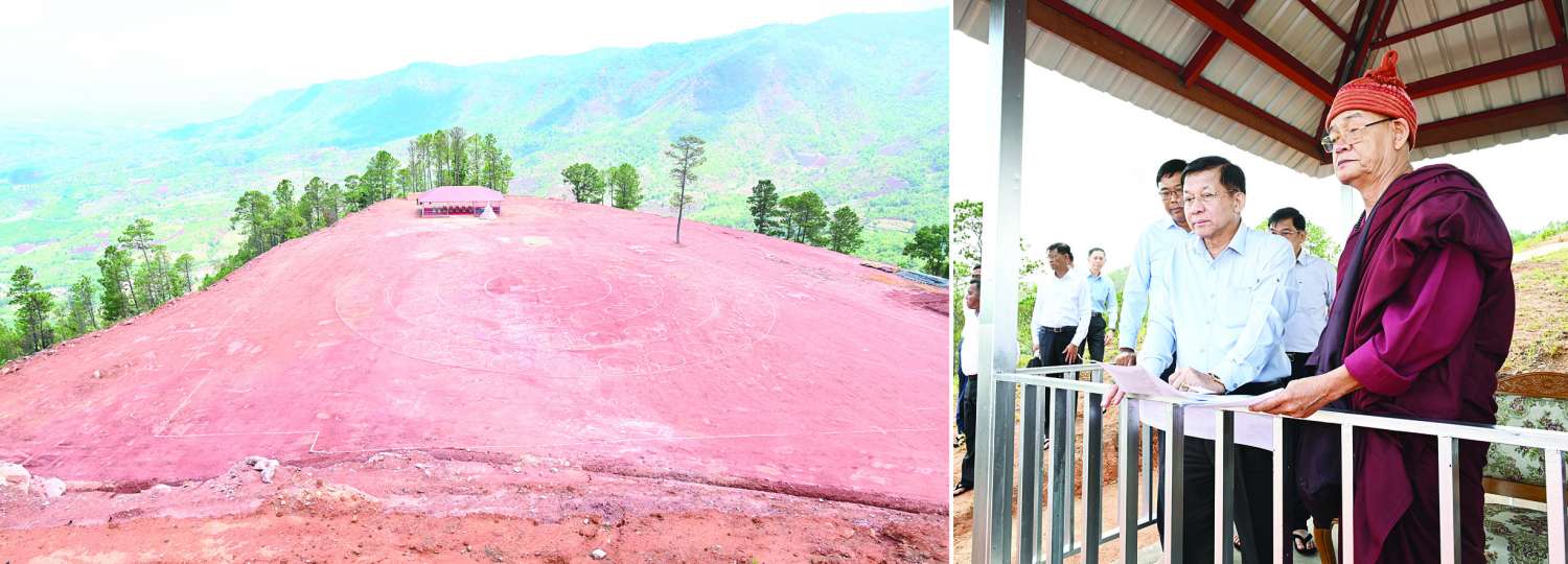 ယင်းနောက် နိုင်ငံတော်စီမံအုပ်ချုပ်ရေးကောင်စီဥက္ကဋ္ဌ နိုင်ငံတော်ဝန်ကြီးချုပ်နှင့် ဇနီးနှင့်အဖွဲ့ဝင်များသည် ဗုဒ္ဓဥယျာဉ်တော် View Point နေရာမှ ကျိုင်းတုံဒေသရှုခင်းများကို ကြည့်ရှုကြပြီး သီလဓမ္မကုသိုလ်ဖြစ်ဆေးခန်းဆောင်ရွက်ထားရှိမှုနှင့် သီလဓမ္မဆေးရုံတော် တည်ဆောက်နေမှုအခြေအနေများကိုကြည့်ရှုကာ တာဝန်ရှိသူများ၏ တင်ပြချက်များအပေါ် လိုအပ်သည်များ မှာကြားသည်။