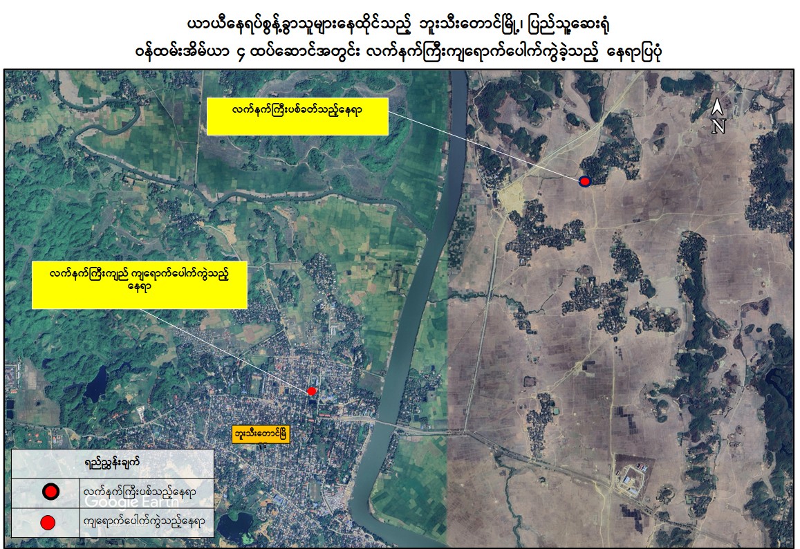ရခိုင်ပြည်နယ်၊ ဘူးသီးတောင်မြို့ရှိ ယာယီနေရပ်စွန့်ခွာသူများနေထိုင်သည့် ပြည်သူ့ဆေးရုံဝန်းအတွင်းသို့ AA အကြမ်းဖက်သောင်းကျန်းသူများက လက်နက်ကြီးများဖြင့် ပစ်ခတ်ခဲ့မှုကြောင့် ဒေသခံပြည်သူ ၃ ဦး သေဆုံးခဲ့ပြီး အသက် ၁ နှစ်ခွဲနှင့် အသက် ၁၀ နှစ်အရွယ် ကလေးငယ်များအပါအဝင် ဒေသခံပြည်သူ ၁၀ ဦး ဗုံးစထိမှန်ဒဏ်ရာများ ရရှိခဲ့ကြောင်း သိရှိရသည်။