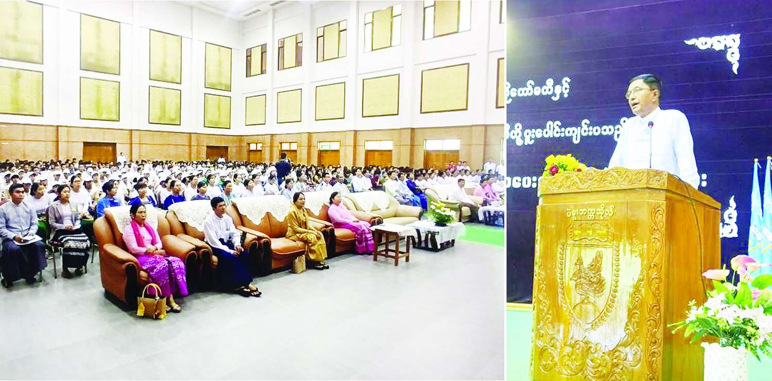 ယနေ့ နိုင်ငံတော်တွင်ကြုံတွေ့နေရသည့် မတည်ငြိမ်မှုများ၊ ဆူပူအကြမ်းဖက်မှုများ၊ ဖျက်ဆီးနှောင့်ယှက်မှုများသည် အသိပညာစဉ်းစားဆင်ခြင်မှု အားနည်းသူများ၏ အကျိုးဆက်ဖြစ်ကြောင်း၊ နိုင်ငံတော်တည်ငြိမ်အေးချမ်းရေး၊ ဖွံ့ဖြိုးတိုးတက်ရေးနှင့် ဒီမိုကရေစီဖော်ဆောင်ရေးအတွက် လူငယ်များအပါအဝင် တိုင်းရင်းသားပြည်သူအားလုံး အသိပညာပြည့်ဝကြမှသာ အောင်မြင်နိုင်မည်ဖြစ်ကြောင်း၊ စာပေလေ့လာဖတ်ရှုကြရန်လိုအပ်ပြီး ဘဝတစ်လျှောက်လုံး လေ့လာဆည်းပူးသင်ယူသည့် လူအဖွဲ့အစည်းအဖြစ် တည်ဆောက်နိုင်မှသာ နိုင်ငံတကာနှင့်ရင်ပေါင်တန်းနိုင်မည်ဖြစ်သည့်အတွက် ယနေ့လူငယ်ကျောင်းသား ကျောင်းသူများသည် အဓိကအခန်းကဏ္ဍမှပါဝင်နေကြောင်း နိုင်ငံတော်အကြီးအကဲက လူငယ်များအပါအဝင် ပြည်သူများလက်လှမ်းမီစွာ စာပေလေ့လာဖတ်ရှုနိုင်ရေး စာကြည့်တိုက်များ ဖွင့်လှစ်နိုင်ရေးအလေးထား ဆောင်ရွက်လျက်ရှိပြီး ပြည်သူများ စာပေလေ့လာဖတ်ရှုရေး တိုက်တွန်းအားပေးလျက်ရှိကြောင်း၊ သက်ရှည်ကျန်းမာပြီး နိုင်ငံ့အကျိုးသယ်ပိုးနိုင်ကြမည့် ဗလငါးတန်ပြည့်ဝသည့် လူငယ်များဖြစ်အောင်၊ မျိုးချစ်စိတ်ဓာတ်၊ ပြည်ထောင်စုစိတ်ဓာတ်ဖြင့် နိုင်ငံတော်တည်ဆောက်ရေးတွင် ပါဝင်နိုင်သူများဖြစ်အောင် ကြိုးစားသွားကြရန် တိုက်တွန်းမှာကြားသည်။