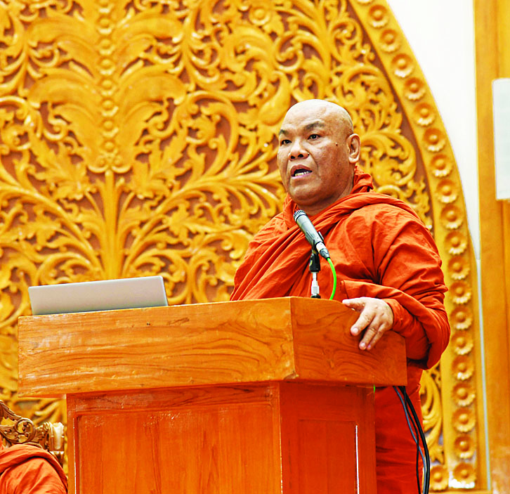 ယင်းနောက် သဘာပတိဆရာတော် နိုင်ငံတော်ပရိယတ္တိသာသနာ့တက္ကသိုလ်(မန္တလေး) ပါမောက္ခချုပ် ဆရာတော် ဒေါက်တာဘဒ္ဒန္တကေသရက ဩဝါဒကထာ မိန့်ကြားချီးမြှင့်တော်မူသည်။