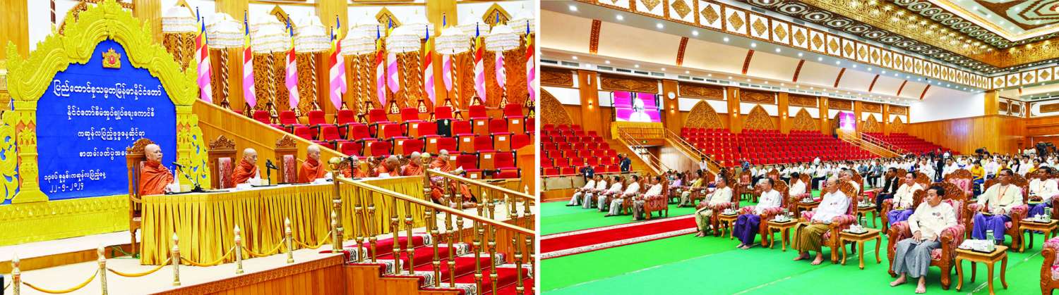 နိုင်ငံတော်စီမံအုပ်ချုပ်ရေးကောင်စီက ကြီးမှူးကျင်းပသည့် ကဆုန်လပြည့်(ဗုဒ္ဓနေ့)အထိမ်းအမှတ် စာတမ်းဖတ်ပွဲအခမ်းအနားကို ယနေ့မွန်းလွဲပိုင်းတွင် ပြည်ထောင်စုနယ်မြေ နေပြည်တော်မာရဝိဇယဗုဒ္ဓဥယျာဉ်တော်အတွင်းရှိ အဂ္ဂါဓိပတိသာသနာ့ဗိမာန်တော်ကြီး၌ ကျင်းပသည်။