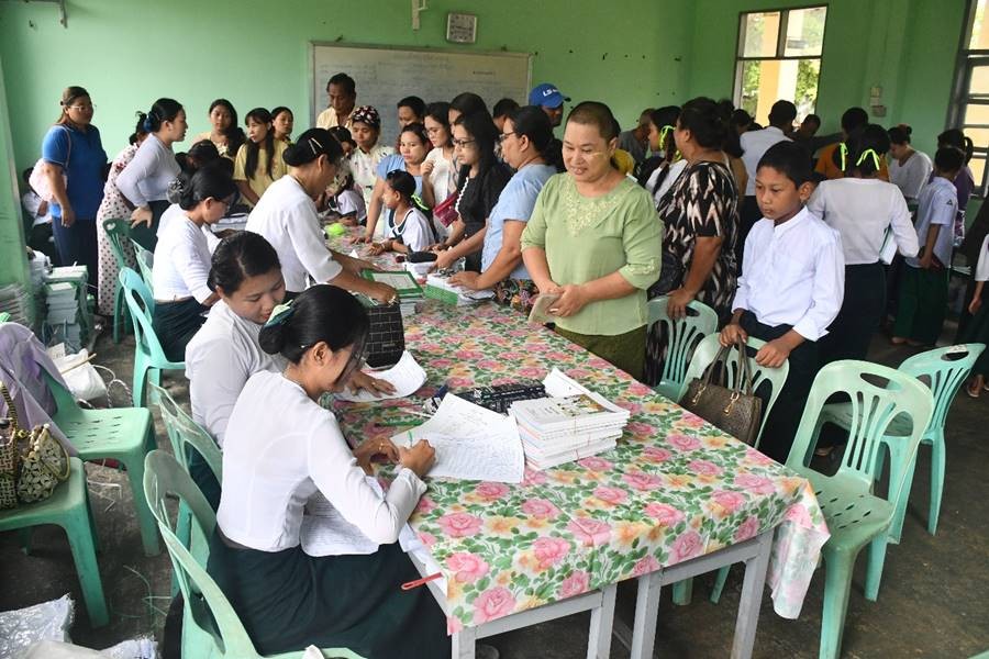 ယင်းသို့ဆောင်ရွက်ရာတွင် တိုင်းဒေသကြီးနှင့် ပြည်နယ်အသီးသီးရှိ အခြေခံပညာကျောင်းများအလိုက် ကျောင်းအုပ်ကြီးများ၊ ကျောင်းအုပ်ချုပ်မှုတာဝန်ခံများနှင့် ဆရာ၊ ဆရာမများက ကျောင်းလာရောက်အပ်နှံသူ မိဘအုပ်ထိန်းသူများနှင့် ကျောင်းသား၊ ကျောင်းသူများ အဆင်ပြေချောမွေ့စွာ ကျောင်းအပ်နှံနိုင်ရေး ဆောင်ရွက်ပေးကြပြီး ကျောင်းသား၊ ကျောင်းသူများအတွက် ပညာရေးဝန်ကြီးဌာနမှ အခမဲ့ထောက်ပံ့ပေးအပ်သည့် စာရေးကိရိယာများနှင့် ကျောင်းသုံးစာအုပ်များကိုလည်း တစ်ပါတည်း ထောက်ပံ့ပေးအပ်ကြသည်။