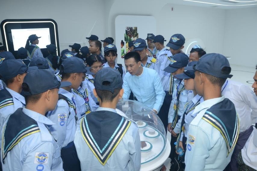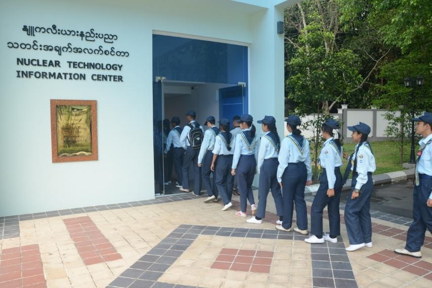 အခြေခံနှင့် တန်းမြင့်လေကြောင်းလူငယ်သင်တန်းအမှတ်စဉ် (၁/၂၀၂၄)မှ သင်တန်းသားများ၊ နည်းပြအုပ်ချုပ်သူ၊ ဆရာ၊ ဆရာမများသည် လေ့လာရေးခရီးစဉ်အဖြစ် ယနေ့တွင် ရန်ကုန်တိုင်းဒေသကြီး၊ လှိုင်မြို့နယ်ရှိ နျူကလီးယားနည်းပညာ သတင်းအချက်အလက်စင်တာသို့ သွားရောက်လေ့လာကြရာ တာဝန်ရှိသူများက ကြိုဆိုနှုတ်ခွန်းဆက်စကား ပြောကြားသည်။ ထို့နောက် လေ့လာရေးခရီးလာရောက်ကြသော လေကြောင်းလူငယ် သင်တန်းသားများအား ပြခန်းခန်းမဆောင်တွင် ပြသထားသော နျူကလီးယားနည်းပညာ အသုံးပြု၍ ရောဂါရှာဖွေမှု(ကိုမိုဂရမ်) နမူနာပုံစံ၊ အသေးစားလျှပ်စစ်ဓာတ်အားထုတ် ဓာတ်ပေါင်းဖိုအမျိုးအစားတစ်ခုဖြစ်သော RHM-200 ၏ အတွင်းပိုင်းပါဝင်ပစ္စည်းများနှင့် အလုပ်လုပ်ပုံပြနမူနာပုံစံ၊ ခန္ဓာကိုယ်၏ ဓာတ်ရောင်ခြည်ပမာဏကိုတိုင်းတာပြီး သဘာဝပတ်ဝန်းကျင်ရှိ အရာဝတ္ထုပစ္စည်းများတွင်ပါရှိသည့် ဓာတ်ရောင်ခြည်ပမာဏနှင့် နှိုင်းယှဉ်ဖော်ပြပေးသည့် Radiometer စက်၊ နျူကလီးယားနည်းပညာဆိုင်ရာ အခြေခံအကြောင်းအရာများကို မေးခွန်းများမေး၍ ဖြေကြားနိုင်သည့် ပဟေဠိဂိမ်းစနစ်၊ သဲ၊ ကျောက်၊ ဘိလပ်မြေစသည့် သဘာဝပတ်ဝန်းကျင်ရှိ အရာဝတ္ထုများတွင် ထွက်ရှိလျက်ရှိသော ရေဒီယိုသတ္တိကြွမှုကို တိုင်းတာဖော်ပြပေးစသည့်စက်၊ နျူကလီးယားဓာတ်ပေါင်းဖိုတစ်ခု၏ အတွင်းပိုင်းတွင်ပါဝင်သည့် ပစ္စည်းများနှင့် အဆင့်ဆင့်တည်ဆောက်ပုံကို 3 D Virtual နည်းပညာဖြင့် ပုံဖော်ပြသသည့်ပုံစံငယ်နှင့် လေအားအသုံးပြု၍ လျှပ်စစ်ဓာတ်အား ထုတ်လုပ်သည့် Wind Turbine နမူနာ ပုံစံငယ်တို့အား တာဝန်ရှိသူများက အသေးစိတ် ရှင်းလင်းပြောကြားသည်။