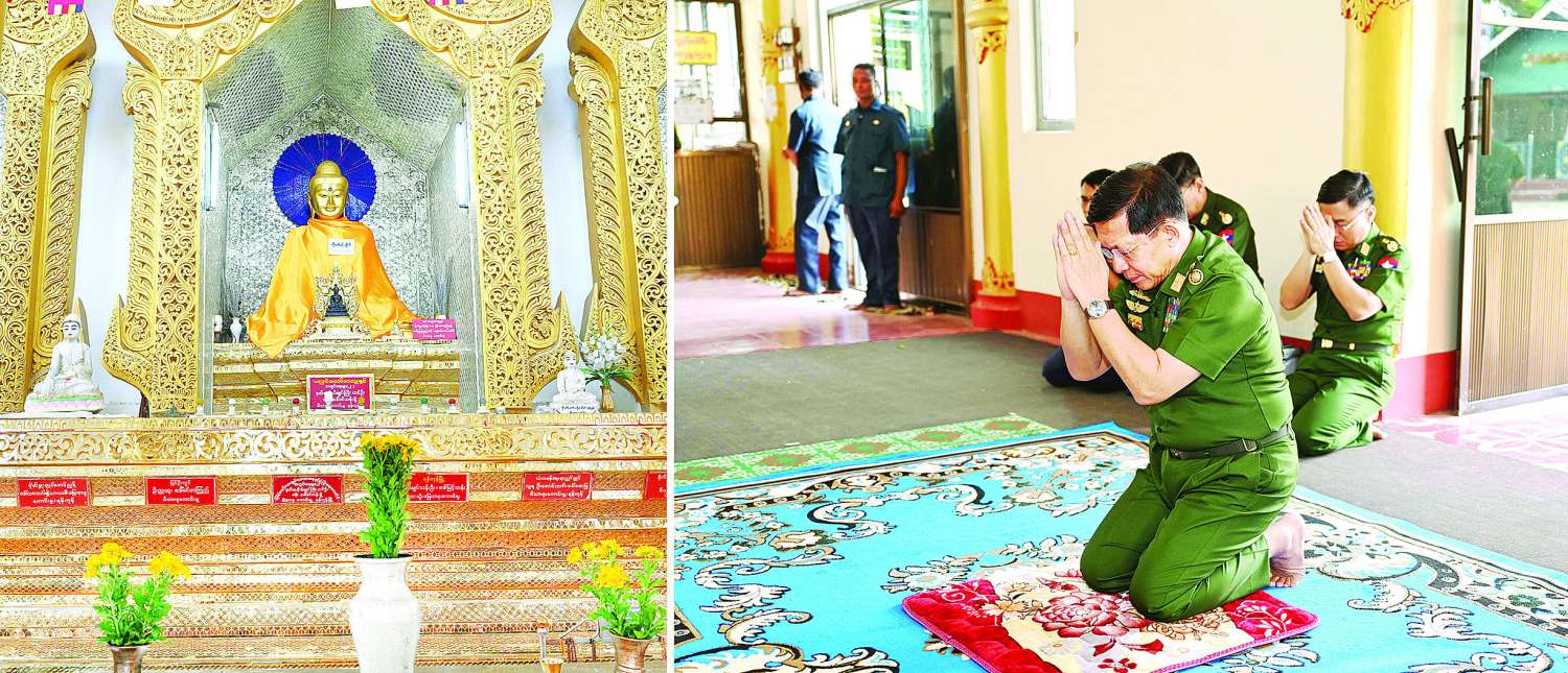 ထို့နောက် နိုင်ငံတော်စီမံအုပ်ချုပ်ရေးကောင်စီဥက္ကဋ္ဌ တပ်မတော်ကာကွယ်ရေးဦးစီးချုပ်သည် မြတ်စွာဘုရားရှင်၏ ပါဒခြေတော်ရာဆောင်ရှိ ဗုဒ္ဓရုပ်ပွားတော်မြတ်အား ဖူးမြော်ကြည်ညို၍ ပန်း၊ ရေချမ်း၊ ဆီမီးများကပ်လှူပူဇော်ပြီး ပါဒခြေတော်ရာအား ဖူးမြော်ကြည်ညိုခဲ့ကြောင်း သတင်းရရှိသည်။