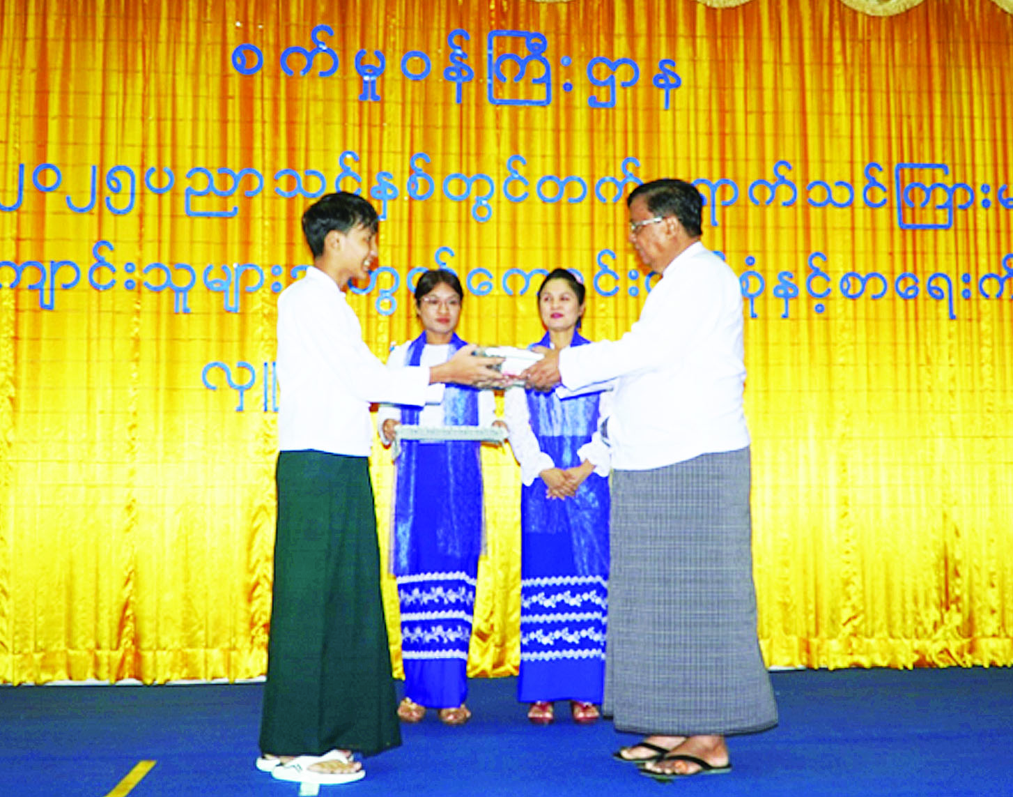 စက်မှုဝန်ကြီးဌာန ၂၀၂၄-၂၀၂၅ ပညာသင်နှစ်တွင် တက်ရောက်ပညာသင်ကြားမည့် ဝန်ထမ်းများ၏ သားသမီး ကျောင်းသား ကျောင်းသူများ ကျောင်းဝတ်စုံ၊ ဗလာစာအုပ်၊ ခဲတံ၊ ဘောပင်များ ထောက်ပံ့ပေးအပ်ပွဲအခမ်းအနားကို ယနေ့နံနက်ပိုင်းတွင် စက်မှုဝန်ကြီးဌာန ရုံးအမှတ် (၃၀) အစည်းအဝေးခန်းမ၌ ကျင်းပသည်။