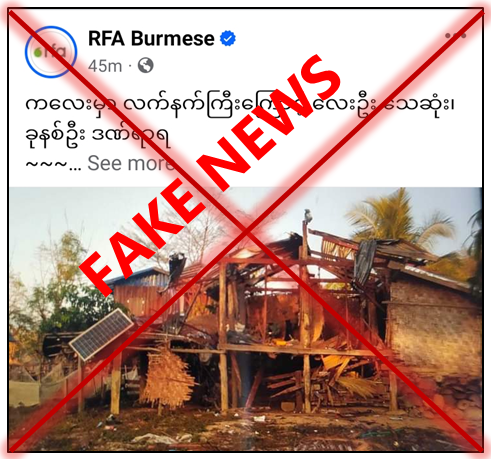တရားမဝင်ပြည်ဖျက်မီဒီယာများသည် အများပြည်သူ ကြောက်ရွံ့ထိတ်လန့်စေရန်နှင့် လုံခြုံရေးတပ်ဖွဲ့ဝင်များအပေါ် အထင်အမြင်လွဲမှားစေရန်အတွက် ဖြစ်စဉ်ဖြစ်ရပ်များအပေါ်အခြေခံကာ လုပ်ကြံရေးသားထားသည် သတင်းတု၊ သတင်းအမှားများကို ရည်ရွယ်ချက်ရှိရှိ လှုံ့ဆော်ဝါဒဖြန့်ဝေလျက်ရှိရာ ယခုဖြစ်စဉ်မှာလည်း ၎င်းကျေးရွာ အနီးနယ်မြေလုံခြုံရေးဆောင်ရွက်ရန်ရောက်ရှိနေသည့် လုံခြုံရေးတပ်ဖွဲ့ဝင်များကို ပြည်သူများ ထင်ယောင်ထင်မှားဖြစ်စေရန်အတွက် မဟုတ်မမှန် လုပ်ကြံရေးသားထားခြင်းသာဖြစ်ပြီး လုံခြုံရေးတပ်ဖွဲ့ဝင်များမှ လက်နက်ကြီးပစ်ခတ်ခဲ့ခြင်းမရှိကြောင်း လုံခြုံရေးတာဝန်ရှိသူတစ်ဦး၏ ပြောကြားချက်အရသိရှိရပါသည်။