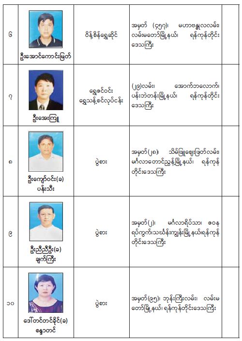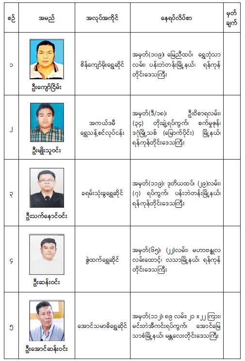 ၎င်းတို့၏ထွက်ဆိုချက်များအရ ပြည်တွင်းရွှေဈေးကွက်အတွင်း ဈေးနှုန်းမတည်မငြိမ်ဖြစ်အောင် နောက်ကွယ်မှ ဆောင်ရွက်လျက်ရှိသည့် ဖော်ပြပါတရားခံ ၁၀ ဦးအား ဥပဒေနှင့်အညီ ခေါ်ယူစစ်ဆေး နိုင်ရေးဆောင်ရွက်ခဲ့ရာ ၎င်းတို့သည် တရားဥပဒေစိုးမိုးရေးအဖွဲ့အစည်းများ၏ ဖမ်းဆီးခြင်းမခံရစေရန် ထွက်ပြေးတိမ်းရှောင်လျက်ရှိကြောင်း သိရှိရသည်။