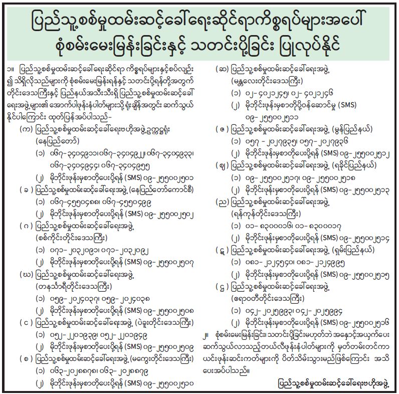 ပြည်သူ့စစ်မှုထမ်းဆင့်ခေါ်ရေးဆိုင်ရာကိစ္စရပ်များအပေါ် စုံစမ်းမေးမြန်းခြင်းနှင့် သတင်းပို့ခြင်း ပြုလုပ်နိုင် 06/03/2024