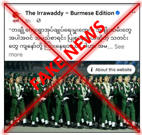 ဧရာဝတီတိုင်းဒေသကြီးနှင့် ပဲခူးတိုင်းဒေသကြီးတို့တွင် စစ်မှုထမ်းဆောင်ရန်အတွက် အမျိုးသမီးများကို အတင်းအကျပ် စတင်စုဆောင်းနေကြောင်း သတင်းတု၊ သတင်းအမှားများကို တရားမဝင်ပြည်ဖျက်မီဒီယာများက မဟုတ်မမှန် ရေးသားဖြန့်ဝေနေသည်ကို တွေ့ရှိရပါသည်။