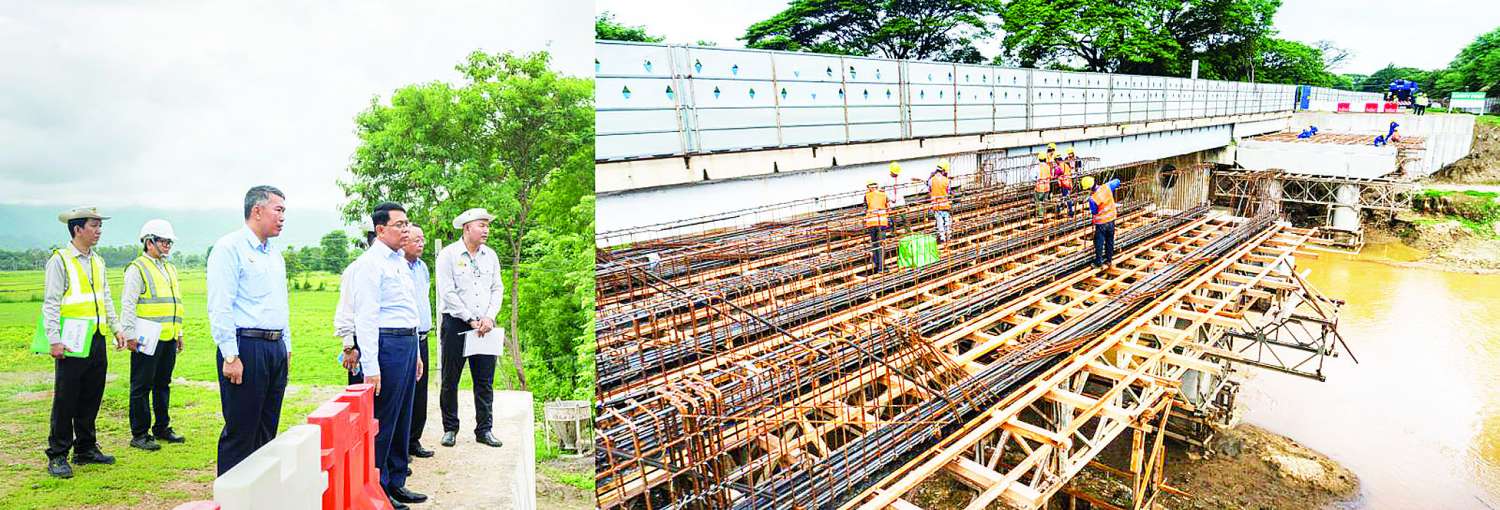 ပြည်ထောင်စုဝန်ကြီးနှင့်အဖွဲ့အား တာဝန်ခံအင်ဂျင်နီယာက လုပ်ငန်းခွင်ရှင်းလင်းဆောင်၌ တံတားတည်ဆောက်ရေးလုပ်ငန်းများ ဆောင်ရွက်ပြီးစီးမှု၊ လက်ရှိဆောင်ရွက်နေမှုနှင့် ဆက်လက်ဆောင်ရွက်မည့် လုပ်ငန်းအစီအစဉ်များကို ရှင်းလင်းတင်ပြရာ ပြည်ထောင်စုဝန်ကြီးက မိုးတွင်းကာလရောက်ရှိပြီဖြစ်၍ တံတားတိုင်လုပ်ငန်းများနှင့် တံတား၏ Up Stream နှင့် Down Stream တို့၏ မြေထိန်းနံရံလုပ်ငန်းများကို သတ်မှတ်အချိန်မီပြီးစီးရေး အလေးထားဆောင်ရွက်ရန်၊ တည်ဆောက်ရေးလုပ်ငန်းများ သတ်မှတ်စံချိန်စံညွှန်းများအတိုင်း အရည်အသွေးကောင်းမွန်အောင်ဆောင်ရွက်ရန်၊ ယာဉ်သွားလာမှုများပြားသည့်အတွက် လုပ်ငန်းခွင်အန္တရာယ်ကင်းရှင်း ရေးအထူးအလေးထား ဆောင်ရွက်ရန်မှာကြားပြီး လုပ်ငန်းခွင်အတွင်း လိုက်လံကြည့်ရှုစစ်ဆေးသည်။